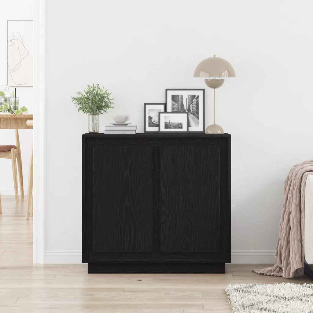 Oldalszekrény Fekete Tölgy 80x34x75 cm Műszaki Fa