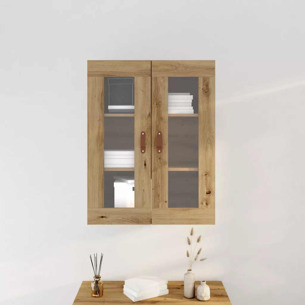 Fali szekrény üvegajtókkal Kézműves tölgy 69,5x34x90 cm