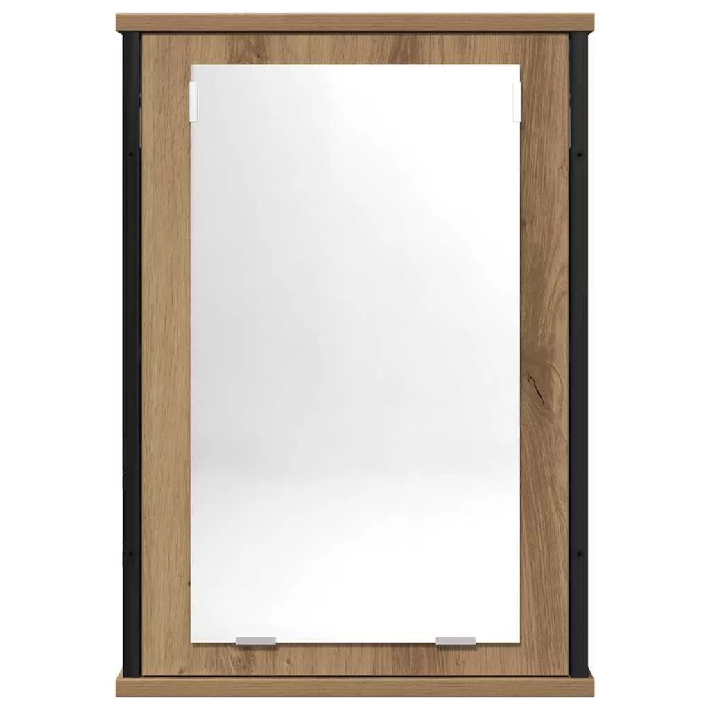 kézműves tölgy szerelt fa tükrös fürdőszobaszekrény 42x12x60 cm