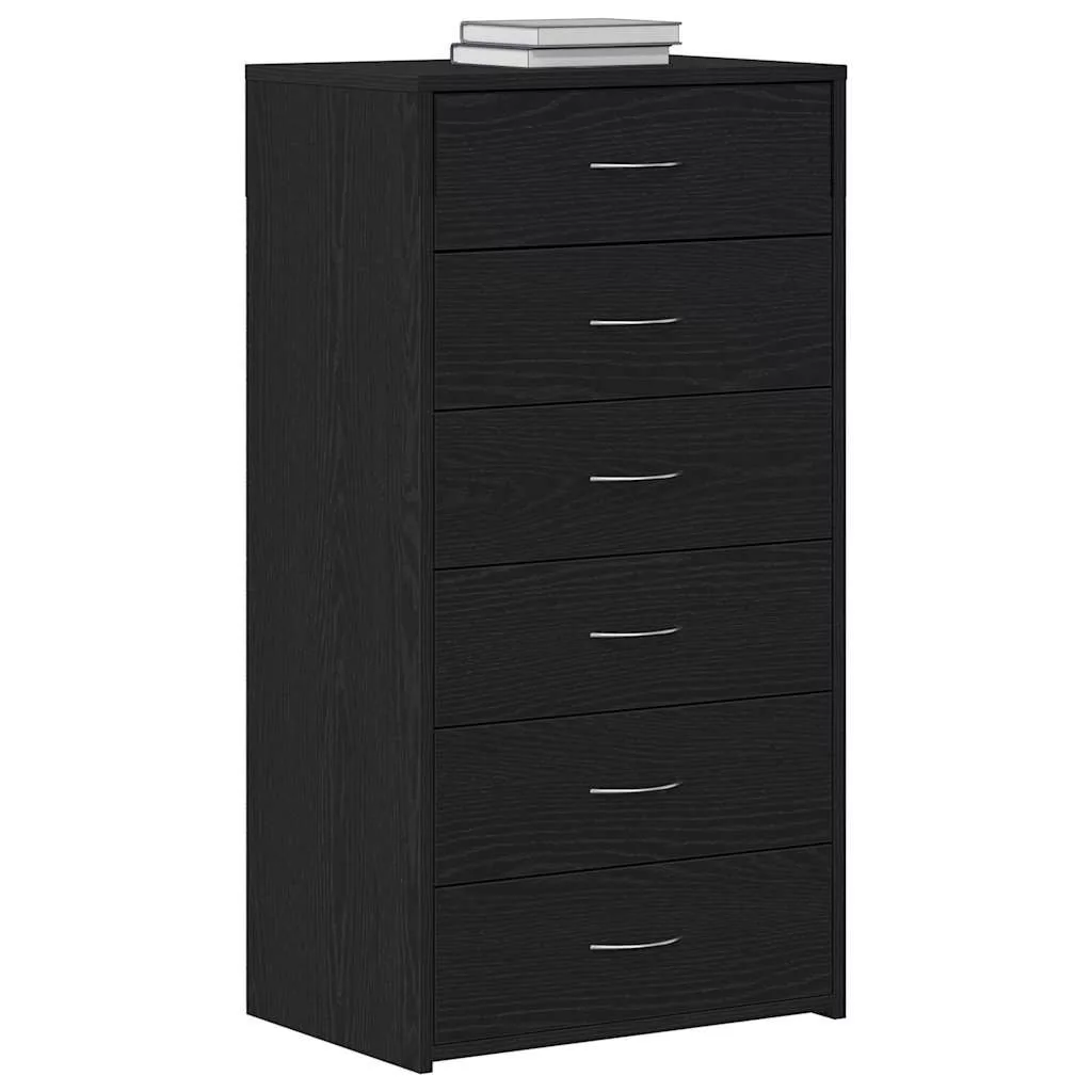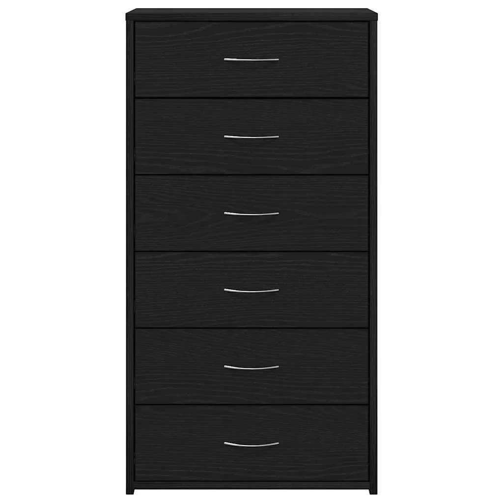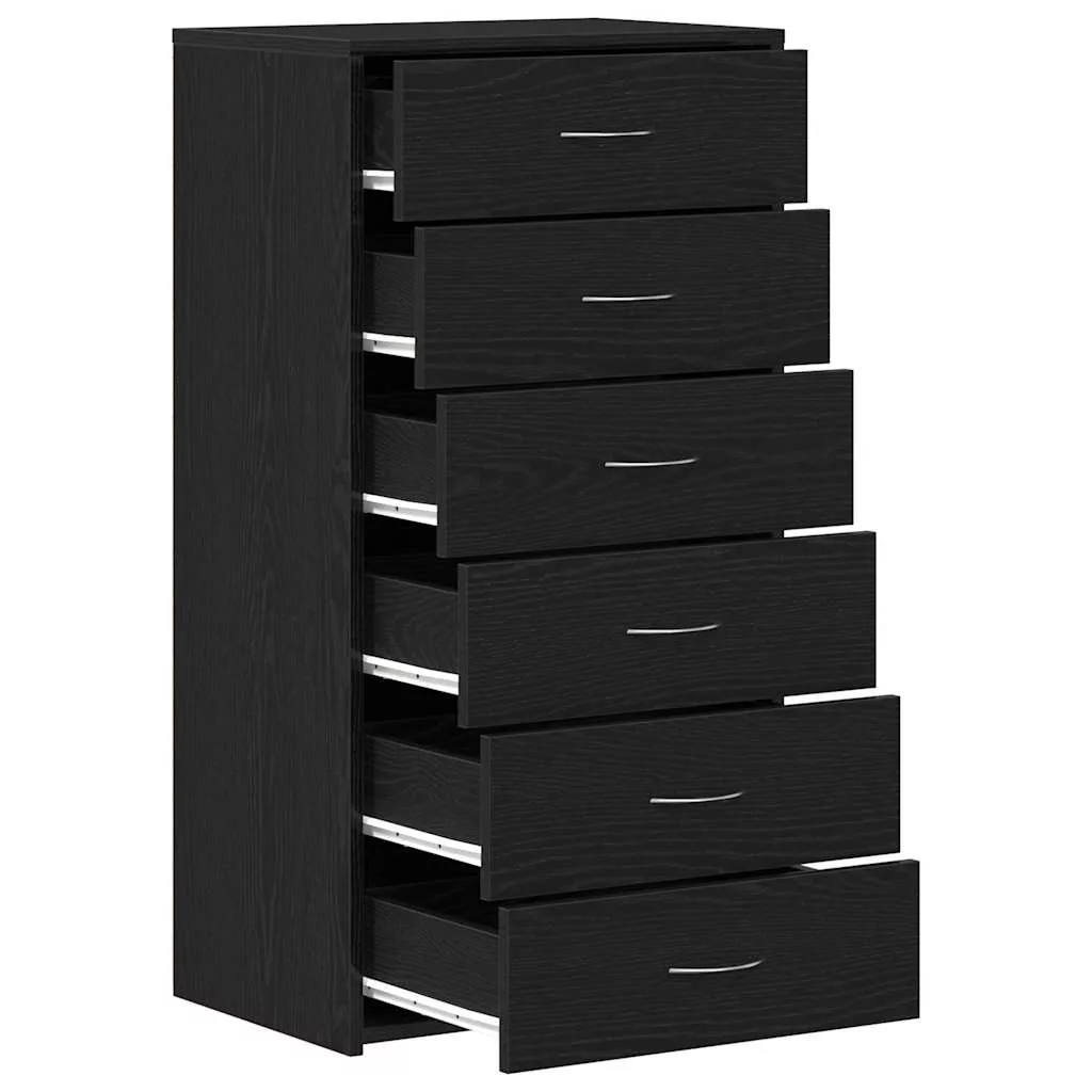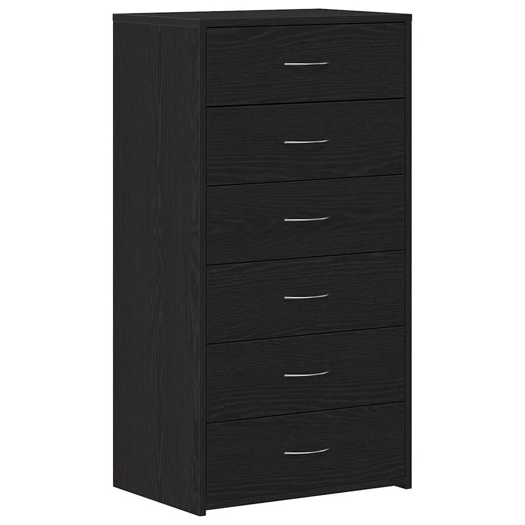 fekete tölgy színű szerelt fa komód 6 fiókkal 50 x 34 x 96 cm