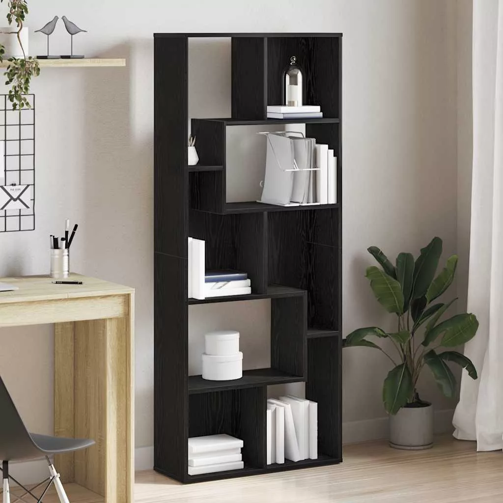 fekete tölgy színű szerelt fa könyvespolc 67 x 24 x 161 cm
