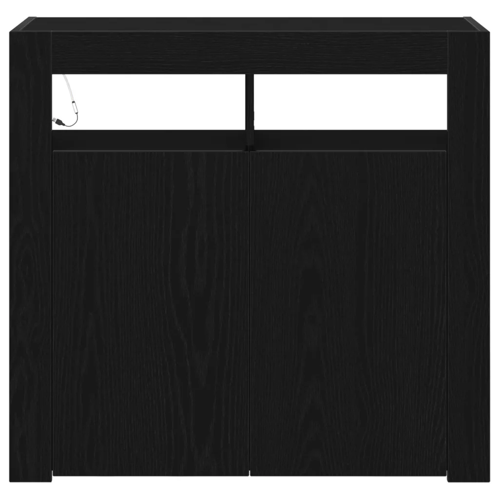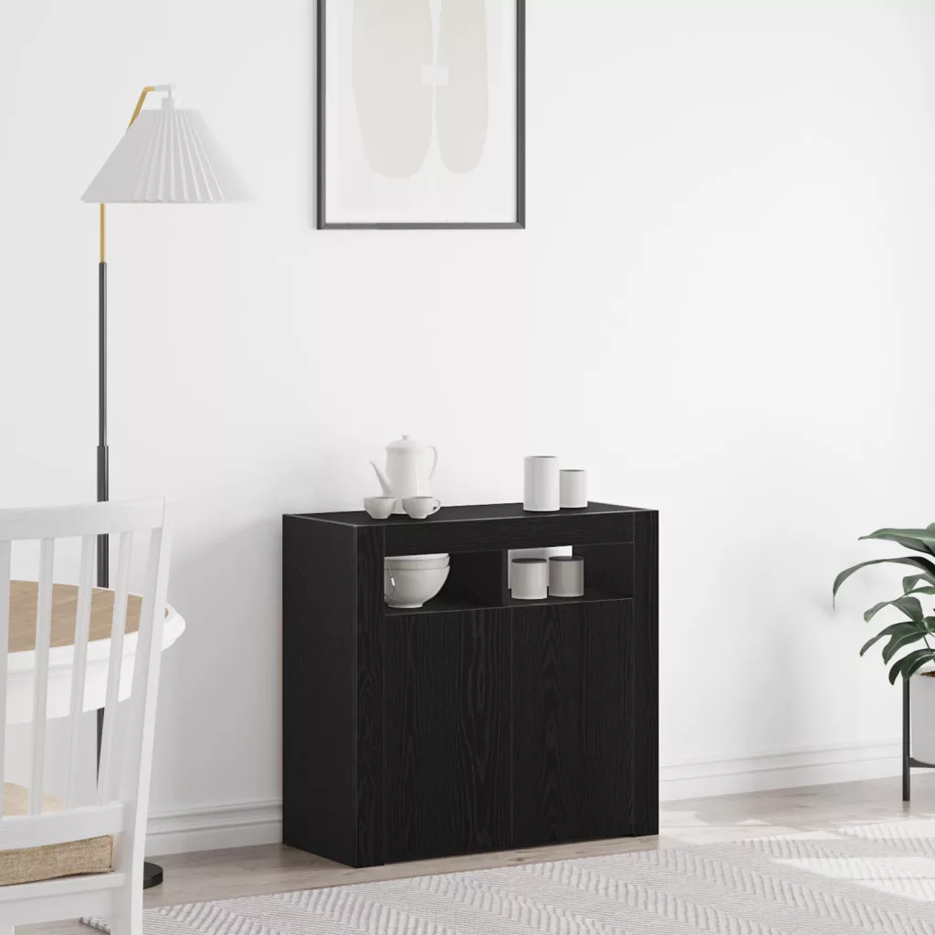 fekete tölgy komód LED világítással, 80x35x75 cm, MDF