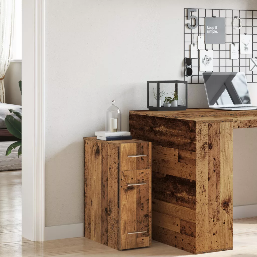 Ez a modern tálcaasztal praktikus dizájnt és szép megjelenést ötvöz, így remek kiegészítője az élettérnek, miközben rengeteg tárolási lehetőséget biztosít. A sima régi fa felület és az erős fából készült alapanyag stílusos, de funkcionális darabbá varázsolja, amit jól fel tudsz használni bármilyen belső térben, ideális nappalikhoz és hálószobákhoz. Stílusos megjelenés: A régi fa szín barátságos hangulatot áraszt. Bőséges tárolás: Három fiókkal, hogy minden elrejthető legyen. Tartós és masszív: Kiváló minőségű fa, amit a mindennapi használat is kibír. Kompakt dizájn: 20 cm mély, 45,5 cm széles és 60 cm magas, ideális a kisebb helyekhez. Könnyű összeszerelés: Csak két emberre és alapszerszámokra van szükség, így gyerekjáték az összeállítása.