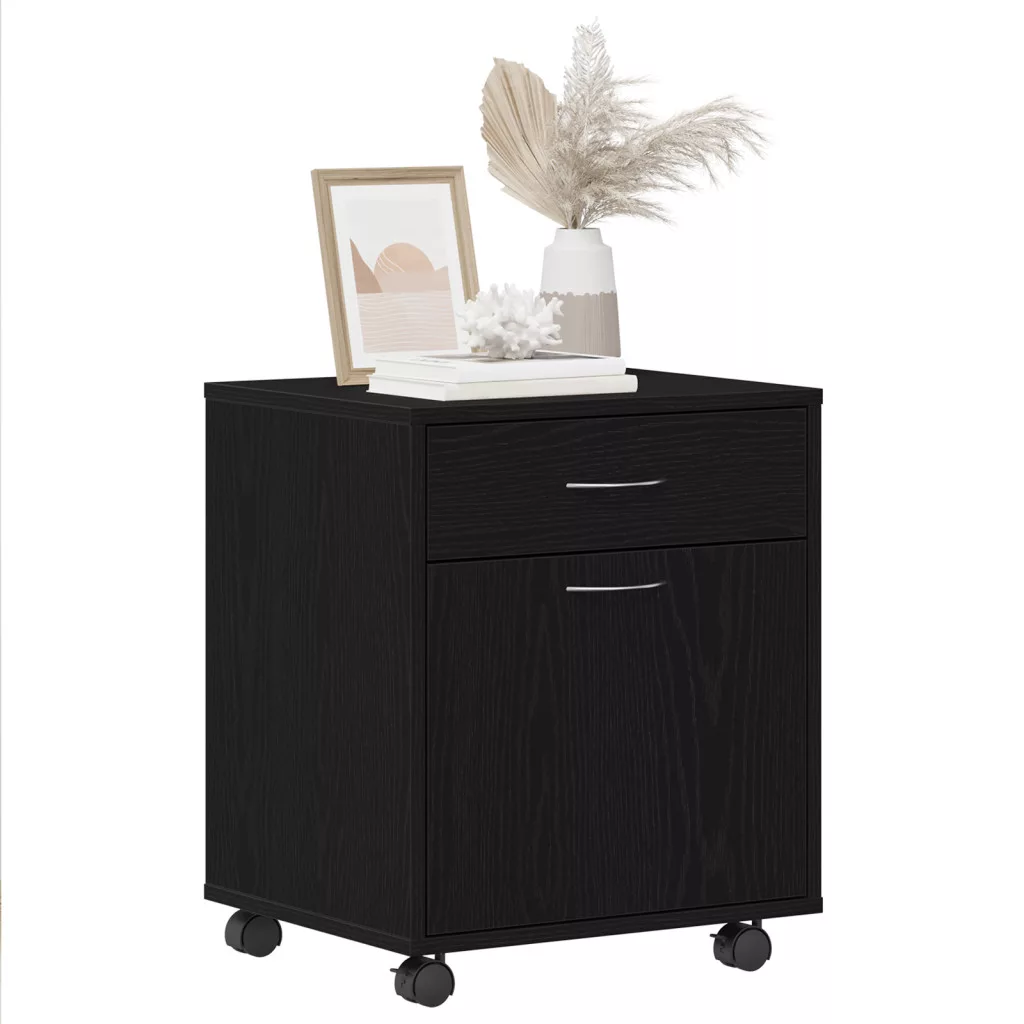 Ez a Modern Fekete Tölgy Tárolószekrény praktikus és stílusos, szóval igazán jó választás bármilyen irodához. Szerelt fából készült, és elegáns fekete tölgy felülete van, ami kinézetével és tartósságával biztosítja a megbízhatóságot. Tökéletes az alapvető irodai kellékek és dokumentumok rendszerezésére. Tárolási Képesség: Rengeteg hely az egy fiókkal és az ajtóval, hogy a dolgaidat rendben tartsd. Modern Esztétika: A fekete tölgy felület és a sima vonalak elegánssá teszik, ami tökéletes a profi környezethez. Könnyű Hozzáférés: A tervezett fogantyúk és a fiókrendszer segítenek, hogy könnyen hozzáférhess a szükséges dolgokhoz, növelve a termelékenységet. Mobilitás: Négy tartós kerék lehetővé teszi a könnyű mozgathatóságot, tökéletes az iroda átrendezéséhez. Tartós Anyagok: Minőségi szerelt fából készült, ez a szekrény megbízható tárolást biztosít hosszú távon.