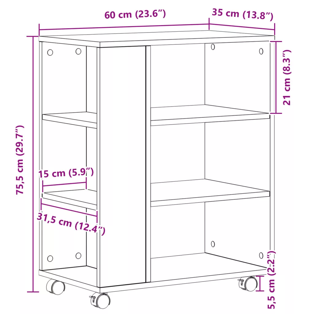 Görgőszekrény Fekete Tölgy 60x35x75 cm Mérnök Fa