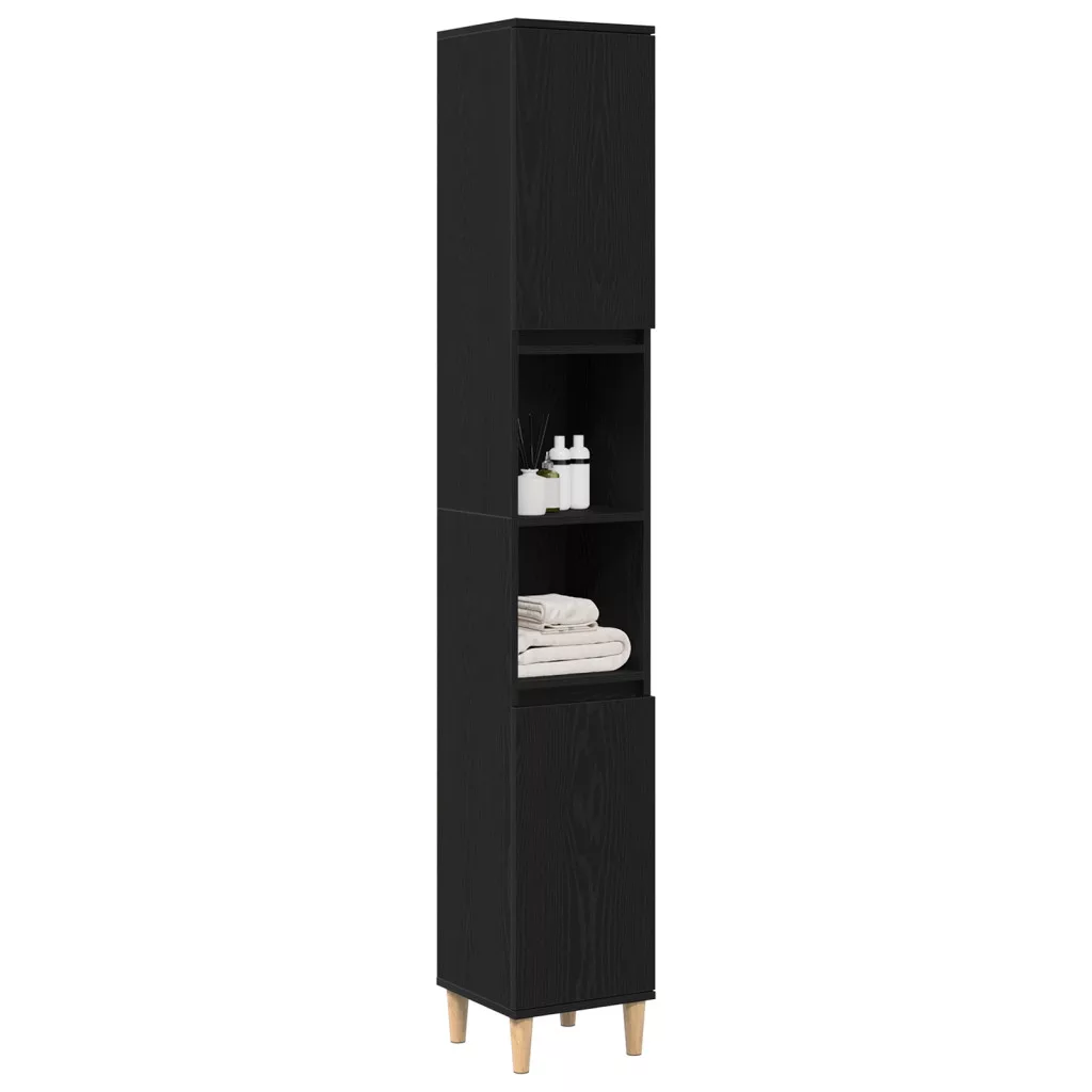 Fürdőszobai Szekrény Fekete Tölgy 30x30x190 cm Kevert Fa