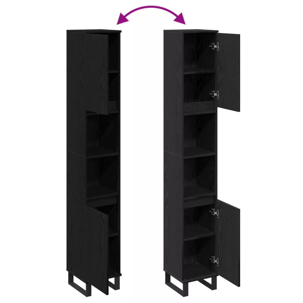 Fürdőszoba Szekrény Fekete Tölgy 30x30x190 cm Szerelt Fa
