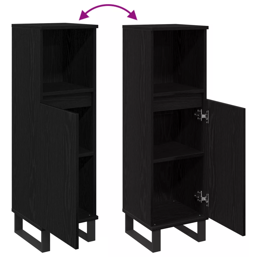 Fürdőszoba Szekrény Fekete Tölgy 30x30x100 cm Mérnöki Fa