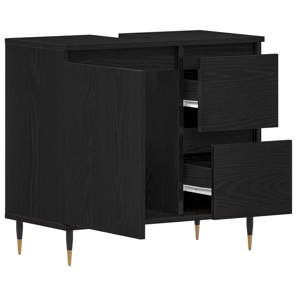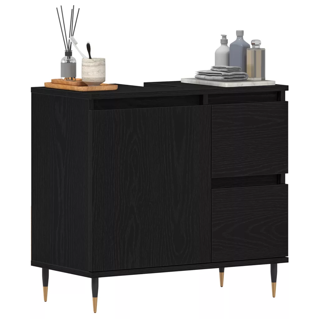 Fürdőszobai Mosdókagyló Szekrény Fekete Tölgy 65x33x60 cm Mérnöki Fa