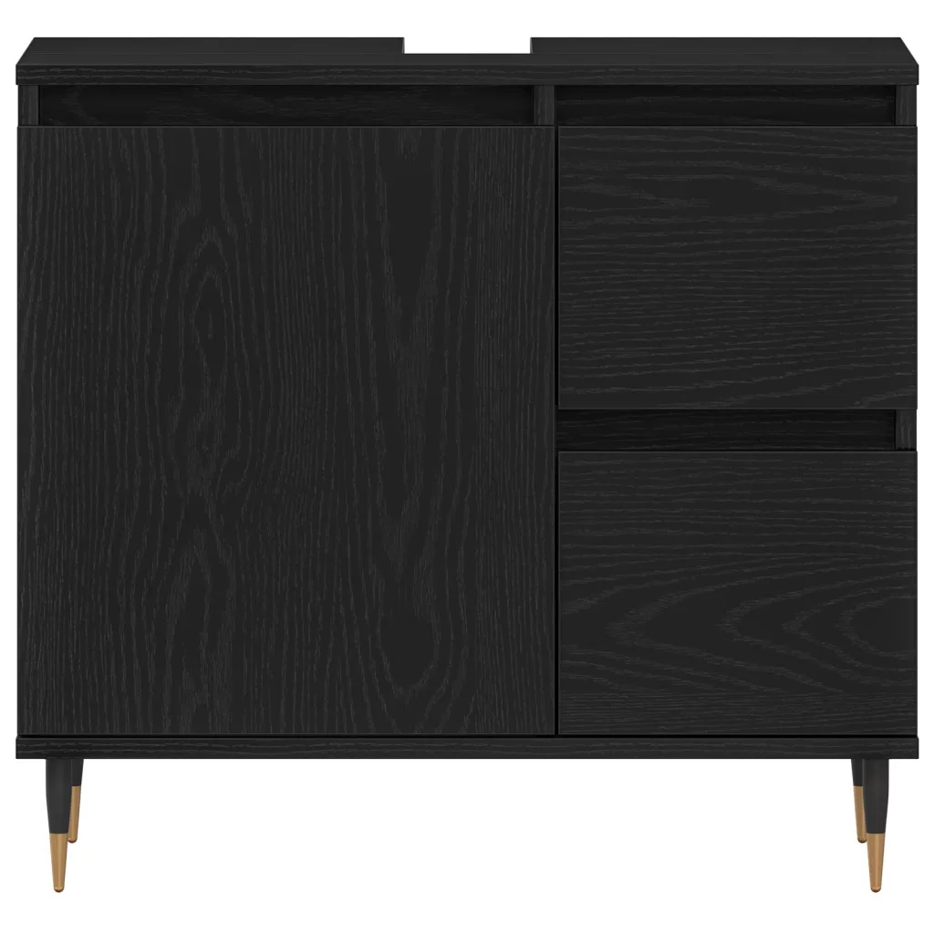 Ez a fekete tölgy piperebútor a modern elegancia tökéletes párosítása, feldobja bármely fürdőszobát. Simaságával és tartósságával stílusos. Különböző belső terekhez illik, ideális felnőtteknek, akik a funkciót és a szép kinézetet keresik. Sima dizájn: Ez a piperebútor tiszta vonalakkal és sima felülettel rendelkezik, ami modern megjelenést ad és illik bármilyen fürdőszoba dekorhoz. Minőségi anyag: Tömör tölgyfából készült, biztosítva a tartós szerkezetet, ami bírja a napi használatot. Hatékony tárolás: Két fiókkal és egy szekrénnyel, ez az egység sok helyet nyújt a rendszerezett tároláshoz. Állítható polcok: A polcok állíthatók, így könnyen igazíthatod különböző tárgyakhoz. Díszes fogantyúk: A sárgaréz gombok eleganciát adnak, miközben funkcionálisak is, javítva a felhasználói élményt.