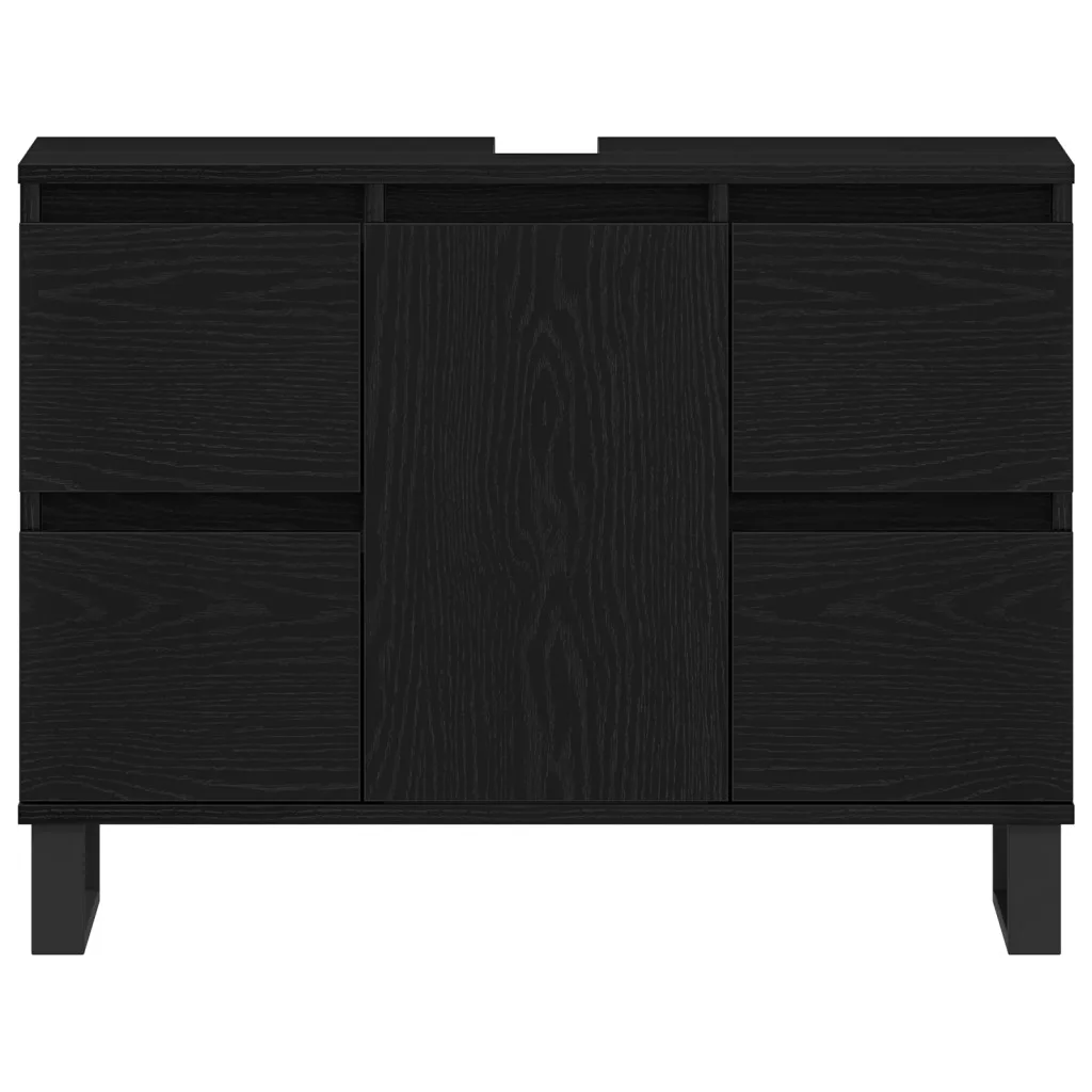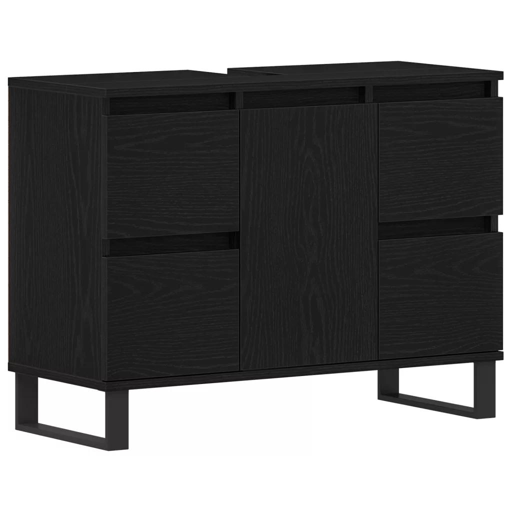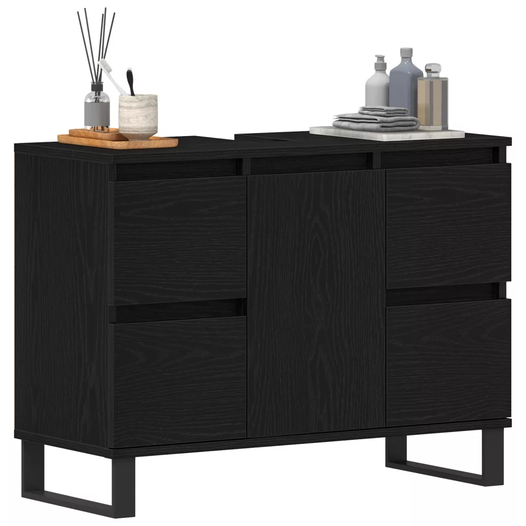 Fürdőszoba Mosdó Szekrény Fekete Tölgy 80x33x60 cm Mérnöki Fa