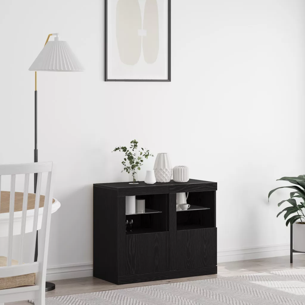 LED világítással ellátott oldalszekrények 2 db Fekete tölgy 41x37x67 cm
