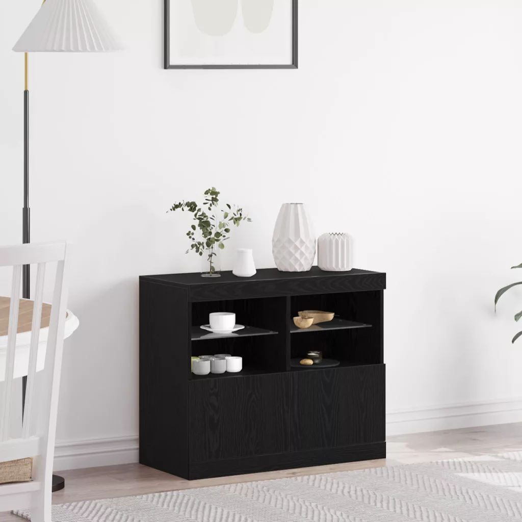 Oldalszekrény LED Műszaki Fekete tölgy 81x37x67 cm