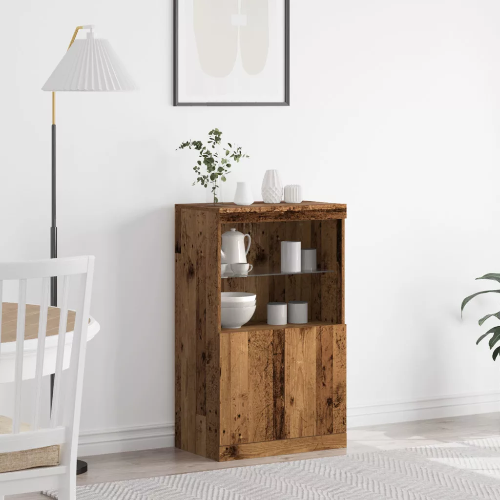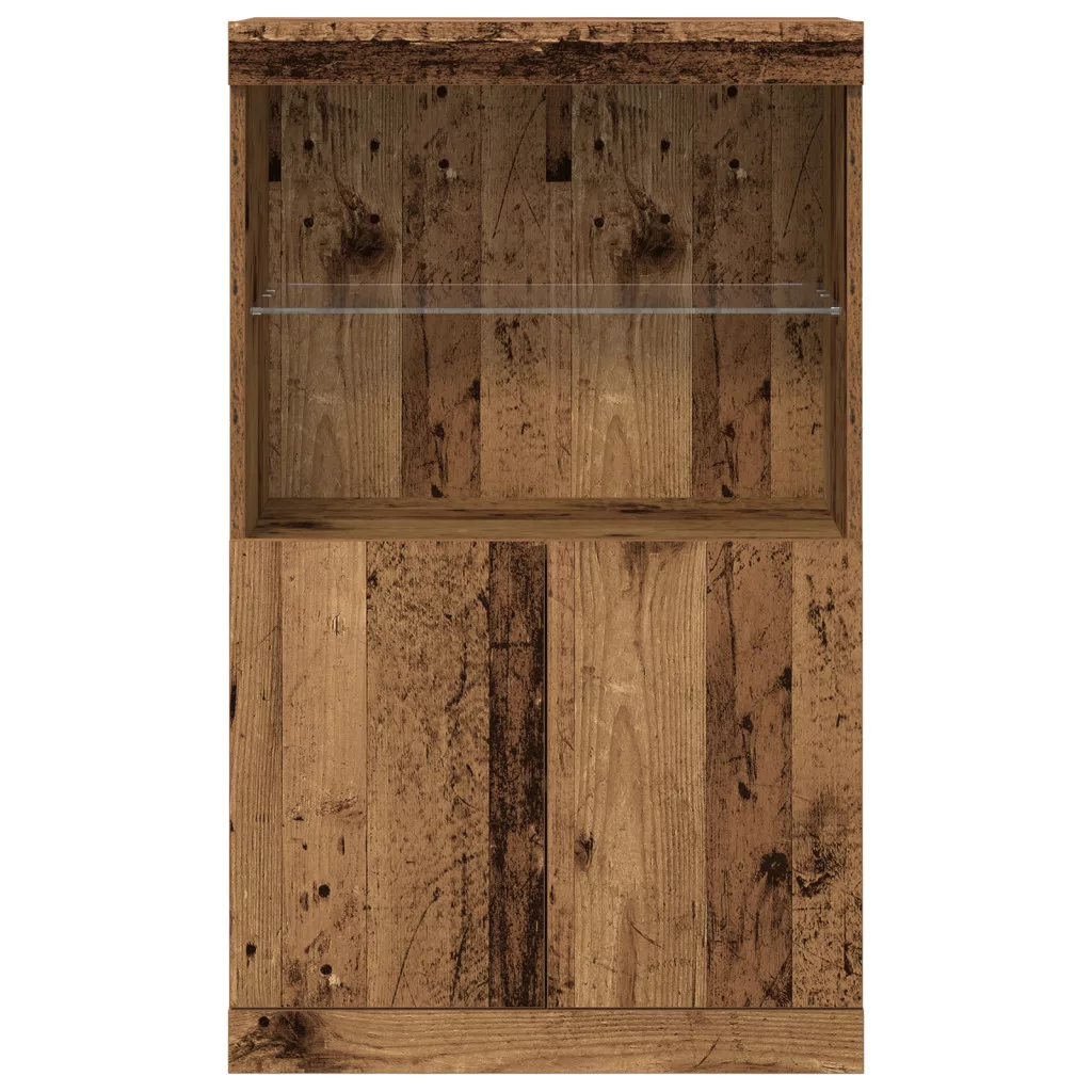 LED világítással ellátott oldalszekrény Régi fa 60x37x100 cm