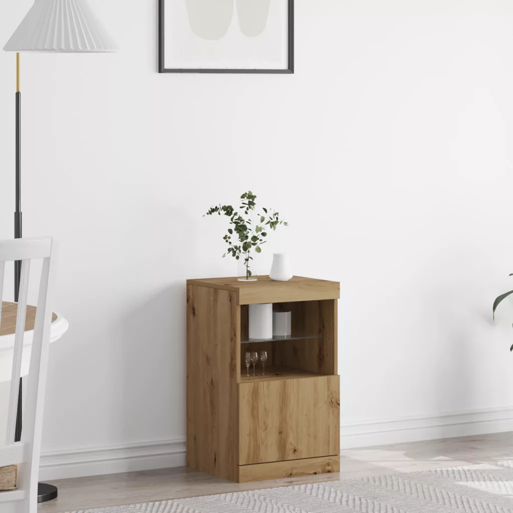 LED világítással ellátott oldalszekrény kézműves tölgy 41x37x67 cm