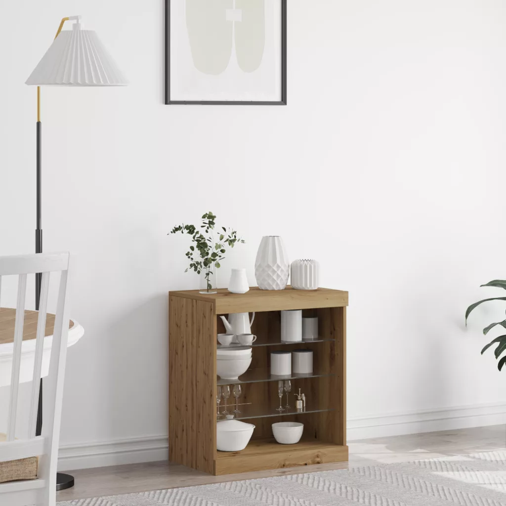 Oldalszekrény LED fényekkel, Kézműves tölgy 60,5x37x67 cm