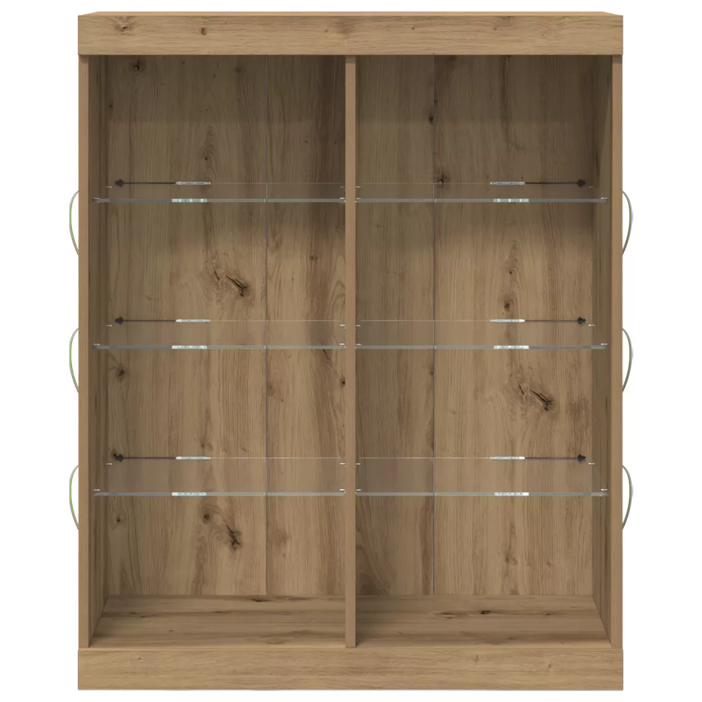 Ismerd meg a vidaXL Oldalasztalt LED világítással, gyönyörű Mesteri Tölgy kivitelben. Tökéletes, hogy bemutasd a kedvenceidet és mindent rendben tarts. Ez a praktikus oldalasztal modern stílusával sok tárolást kínál hat üvegpolccal — ideális étkezőbe vagy nappaliba. Ez a termék DC 5V-ról működik, de a tanúsított 5V-os USB-tápforrást nem tartalmazza. A magasabb feszültség túlmelegedést okozhat, ami a készülék károsodását, valamint a túlmelegedés és a tűz esetleges kockázatát okozhatja.
