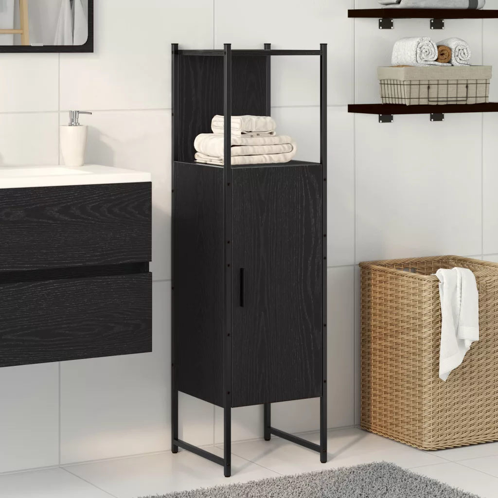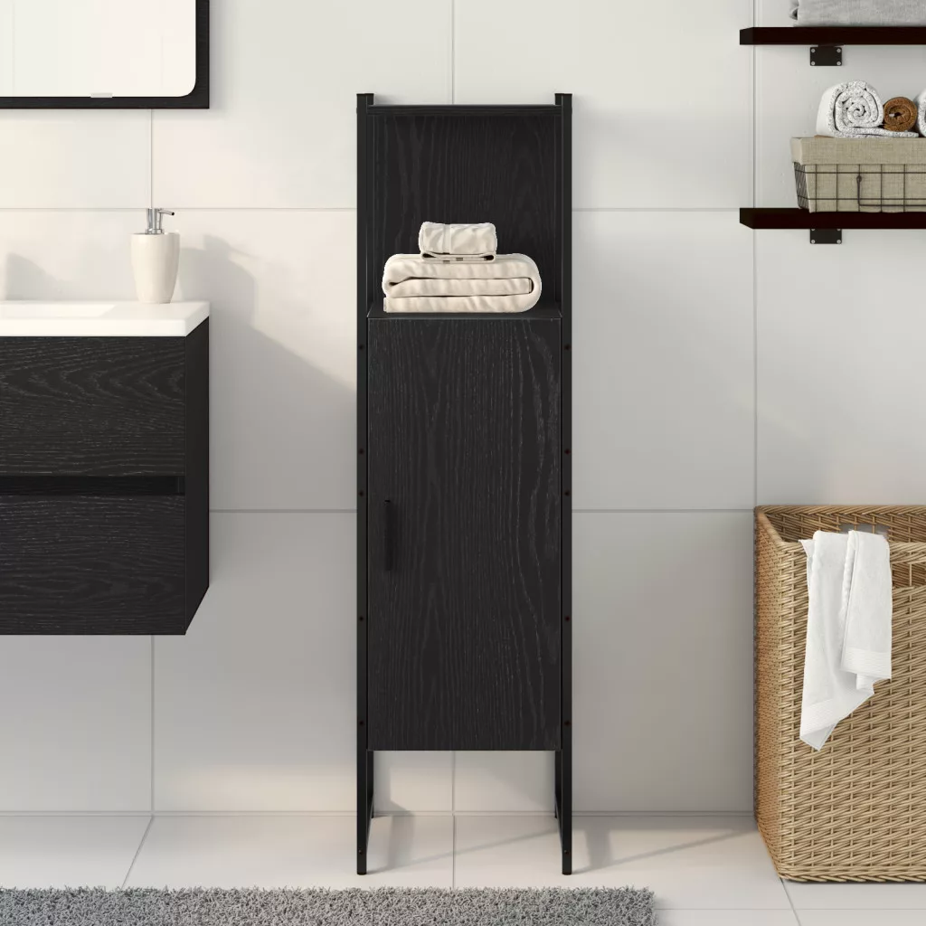 Fürdőszoba Szekrény Fekete Tölgy 33x33x120,5 cm Mérnöki Fa