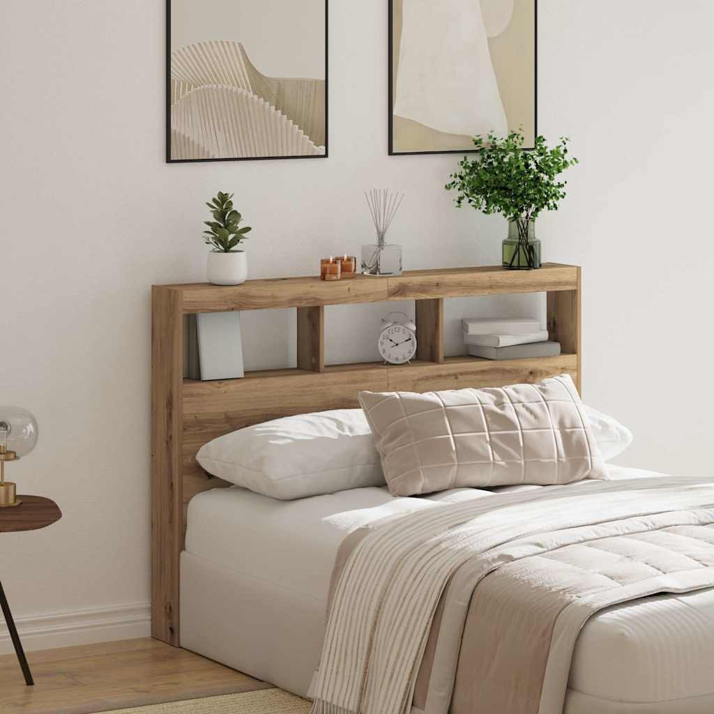 kézműves tölgy áthidalószekrény LED-ekkel 140 x 17 x 102 cm