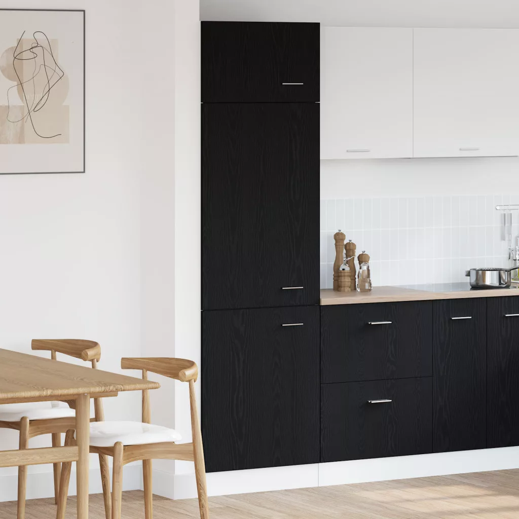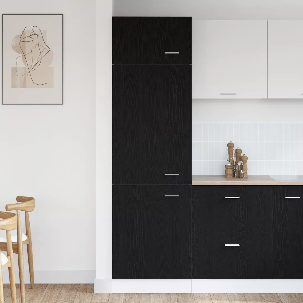 Ez a fekete tölgy konyhai magas szekrény modern dizájnjával és tágas elrendezésével feldobja a konyhát. 60 cm széles és 207 cm magas, nemcsak a stílusos megjelenésért felel, hanem praktikus a tárolásban is - tökéletes, ha szeretnéd átláthatóan és szépen tartani a konyhádat. Rengeteg tárolóhely: Ez a szekrény úgy van megtervezve, hogy rengeteg helyet biztosít a konyhai dolgaidnak, mindent könnyen tárolhatsz, miközben a kezed ügyébe is kerül. Modern dizájn: Chic fekete tölgy borítása miatt nagyszerűen néz ki, és jól illik a kortárs konyhákhoz. Könnyű hozzáférés: A három zsanéros ajtó gyors és egyszerű hozzáférést biztosít. Tartós anyag: Szerelt fából készült, ez a szekrény bírja a napi használatot, miközben megőrzi eleganciáját. Többfunkciós: Ez a magas szekrény nemcsak konyhákhoz való; jól elfér a kamrákban, fürdőszobákban vagy bárhol, ahol szükség van némi tárolásra.