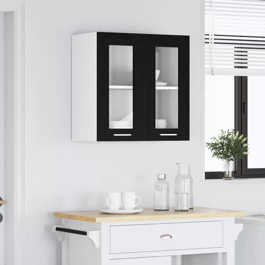 Fekete tölgy függő üveg szekrény - 60x31x60 cm, mérnöki fából
