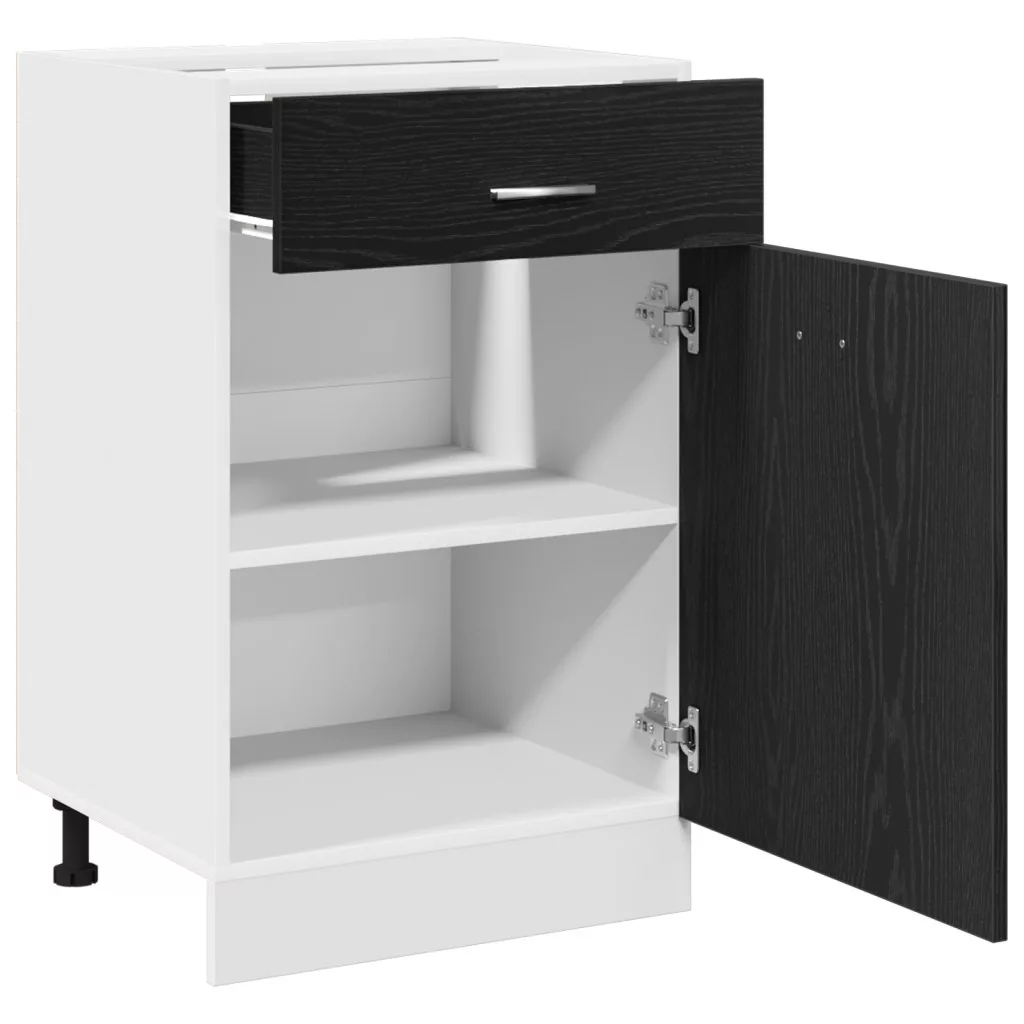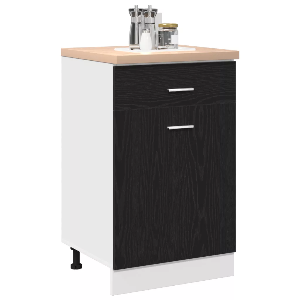 Ez a Modern Fekete Tölgy Konyhaszekrény ötvözi a stílust és a praktikát, igazi kötelező darab a konyhádba. Kiváló minőségű szerelt fából készült, elegáns hatást kelt, míg a fekete felület jól passzol a sima fehér polcokhoz, így könnyen illeszkedik a modern dizájnba. Rengeteg tároló: A 50 x 46 x 81.5 cm-es tágas szekrény sok helyet kínál a konyhai alapvető szükségleteidnek, így a főzőtered rendezett marad. Az ajtó zsanéros kialakítása könnyű hozzáférést biztosít, miközben elegáns megjelenést ad. Elegáns dizájn: A modern fekete tölgy felület nemcsak jól néz ki, hanem eleganciát is hoz a konyhába, javítva a főzőted hangulatát. Állítható lábak: A szekrény állítható lábbal bír, ami segít a stabilitásban, tehát jól beállíthatod, még ha a padló nem egyenes. Ez régi házaknál különösen hasznos lehet. Tartós és ellenálló: A kopásálló szerelt fa anyagból készült szekrény mindennapi használatra van tervezve, anélkül hogy a kinézetből áldoznál, így jó befektetés. Multifunkcionális tárolás: Tökéletes konyhai kellékeknek, edényeknek és fűszereknek, ez a szekrény rugalmas tárolási megoldás, ami pontosan megfelel a főzési igényeidnek.