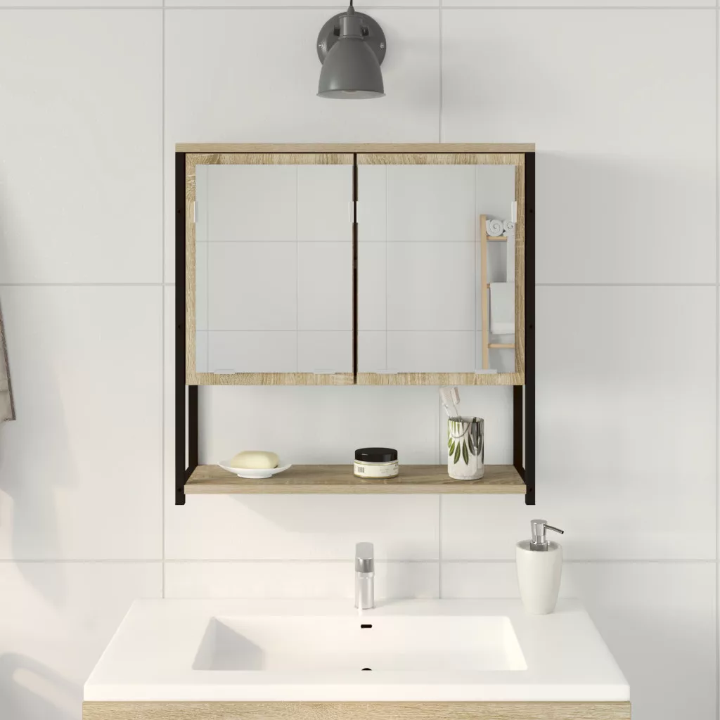 Fürdőszobai Tükrös Szekrény, Sonoma Tölgy, 60x16x60 cm, Műanyag és Fa