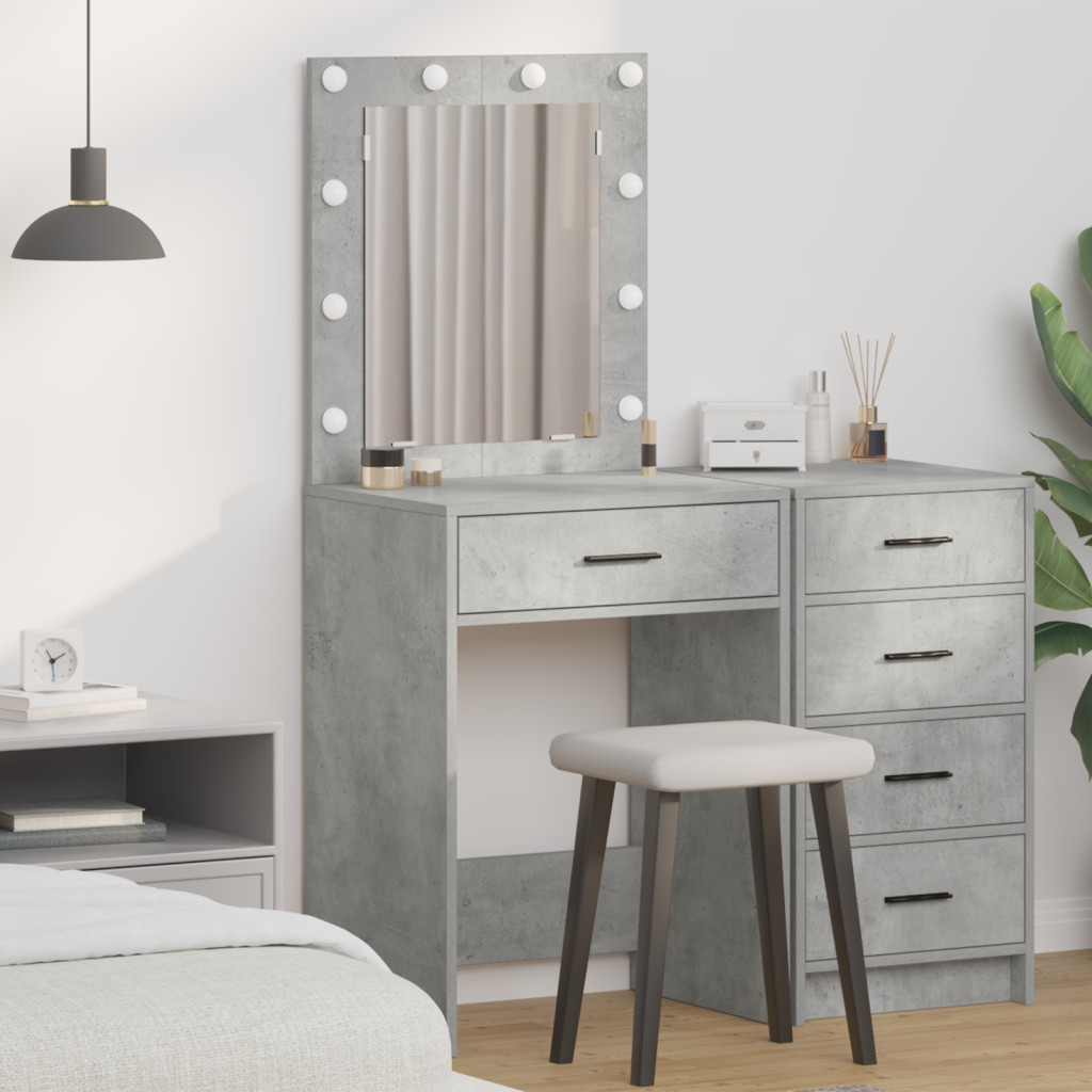 sminkasztal LED világítással beton szürkében, 50x41x135 cm