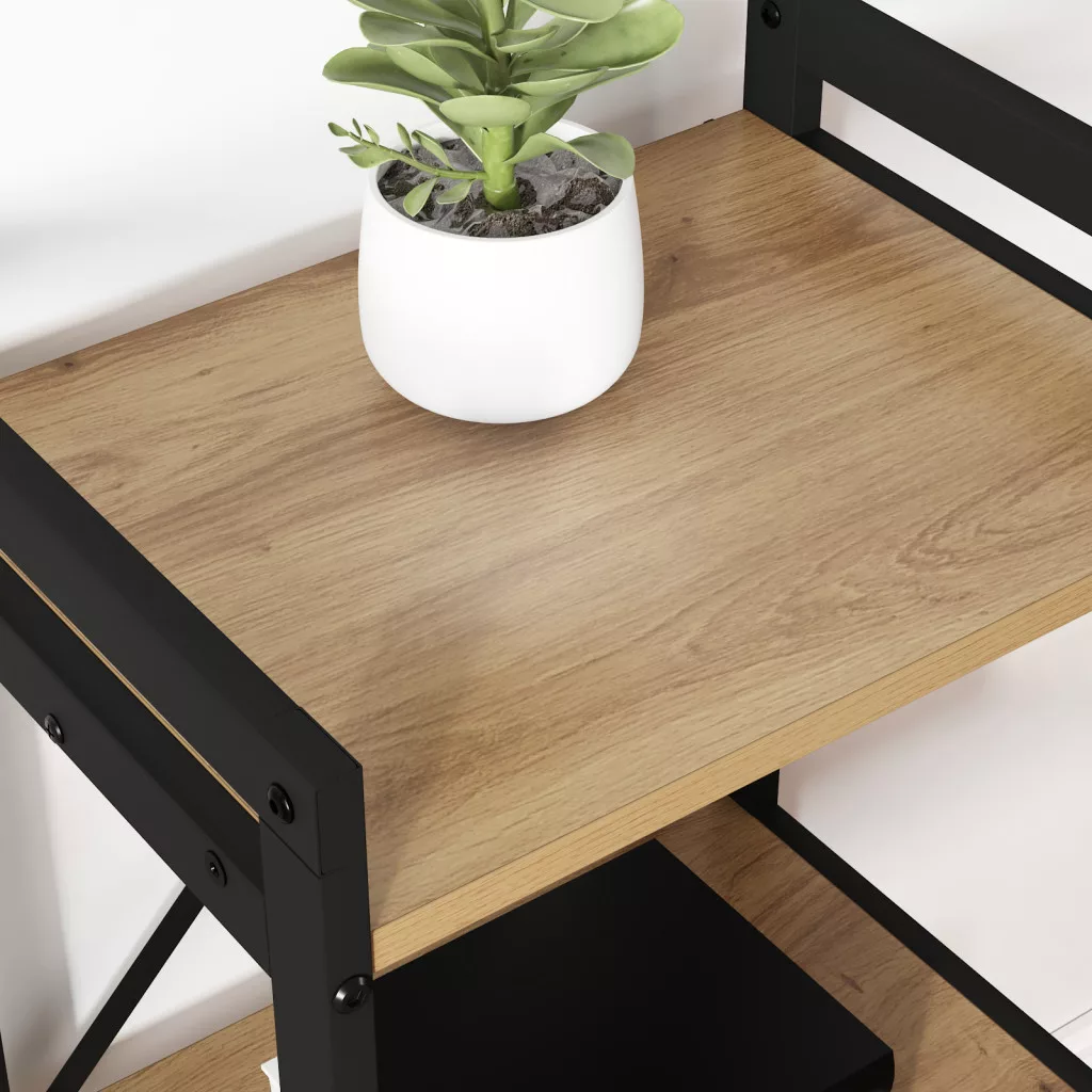 Ez a könyvespolc egy szuper kombinációja az ipari dizájnnak és a praktikus tárolásnak, kifejezetten a modern otthonodhoz szabva. Mérnöki fából készült, menő acél elemekkel kiegészítve, ami nemcsak menő, hanem nagyon praktikus is. Tökéletes könyvek és dekorációk tárolására, bármilyen helyen elfér, legyen az a színes nappalid vagy a home office-d. Ipari kinézete pedig egy kis kortárs csavart ad a dolognak. Ipari báj: Ez a könyvespolc egy laza, városi kinézetet kapott, loftok és raktárak hatása alatt. Kiváló minőségű mérnöki fából és masszív acélból készült, így egyedi stílust ad bármilyen szobának. Az nyitott keret dizájnja megkönnyíti favorit olvasmányaid elérhetőségét és dekorációid bemutatását, alapvető része lesz a szobád hangulatának. Bőséges tárolóhely: A többszintes polcok rengeteg helyet kínálnak a könyveknek és dekoratív tárgyaknak. A dizájn lehetővé teszi, hogy kreatívan rendezd el a dolgaidat. Ha könyvtárat tárolsz, vagy különleges trinketeket mutatsz be, a többszintű kinézet mindent rendszerezetté és menővé varázsol. Állítható stabilitás: Állítható lábakkal érkezik, amik segítenek a stabilitásban, még egyenetlen padlókon is. Könnyen beállíthatod a polcokat, aszerint, hogy hogyan akarod elrendezni a dekorációdat, függetlenül attól, hogy milyen a padló. Ezek a praktikus szintezők megkönnyítik, hogy bármilyen térbe beleilleszkedjen. Kereszt szerkezeti támogatás: A kereszt dizájn fokozza a szilárdságot és egy kis stílust is ad. Az átlós merevítők segítik a stabilitását, miközben jól is néz ki. Ezek a részletek figyelmet keltenek, összekapcsolva a stílust a tartóssággal. Személyre szabott használat: A mérnöki fa és acél kombinálásával nemcsak strapabíró, hanem évekig jól is néz ki. A fa szép, mint a divatos keményfa, de kevesebb gondoskodást igényel és mindennapi használatnak is ellenáll. Egy gyors foglalkozás egy száraz ronggyal tartja őt jól, így a karbantartás gyors és hatékony.