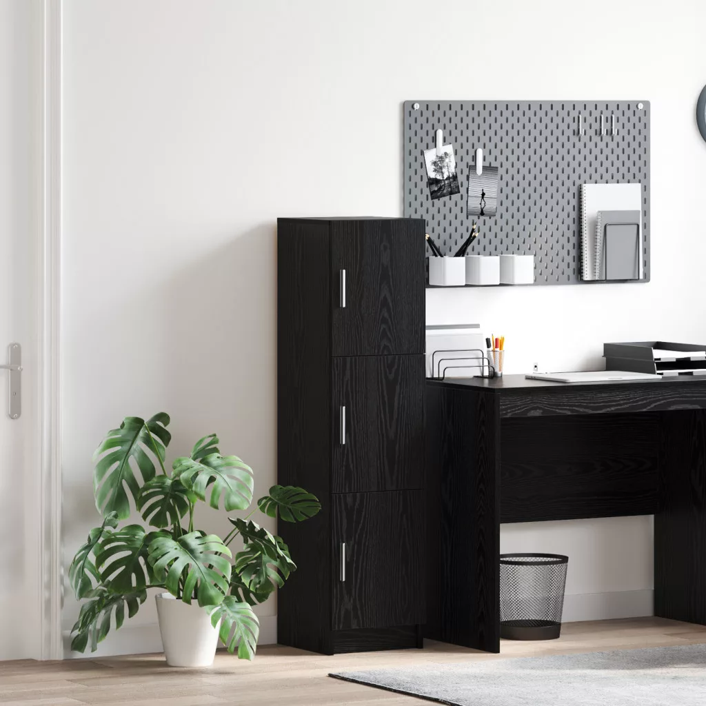 Fekete Tölgy Oldalszekrény Fekete Tölgy MDF és Fa Furnér Közepes