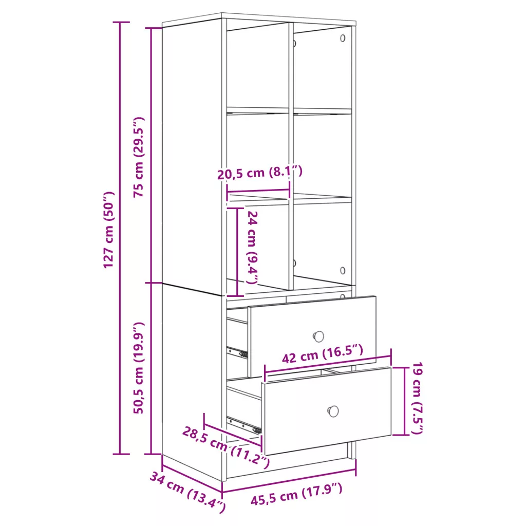 Magasfiú fiókkal Füstölt tölgy 45,5 x 34 x 127 cm