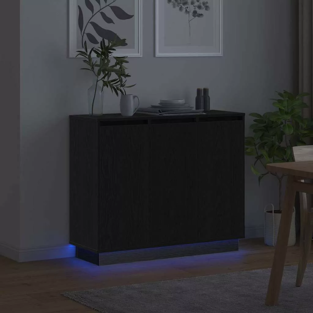 LED tálaló polcokkal Fekete tölgy 90 x 32 x 75 cm Faanyag