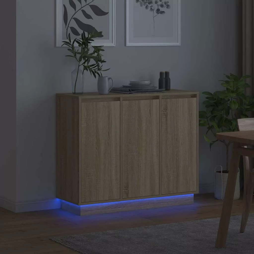 LED tálaló polcokkal Sonoma tölgy 90 x 32 x 75 cm Faanyag