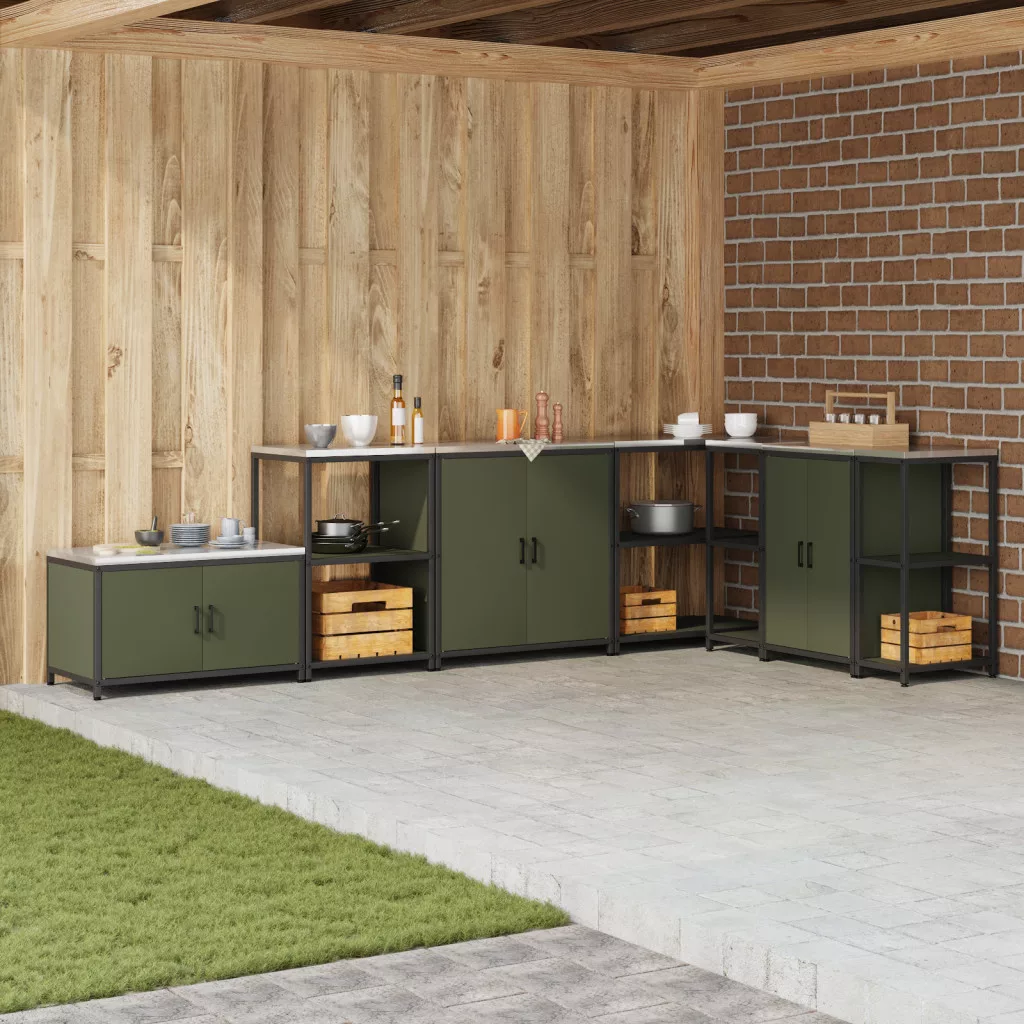 Konyhai tárolópolc polcokkal tárolóval Olívazöld 60 x 50 x 92 cm Acél
