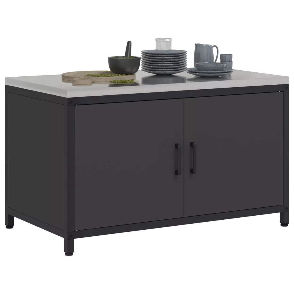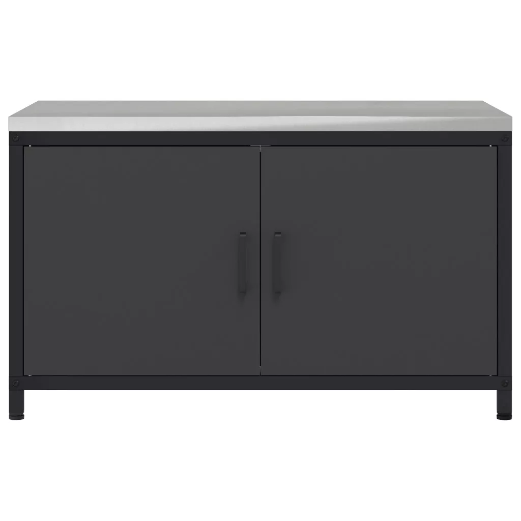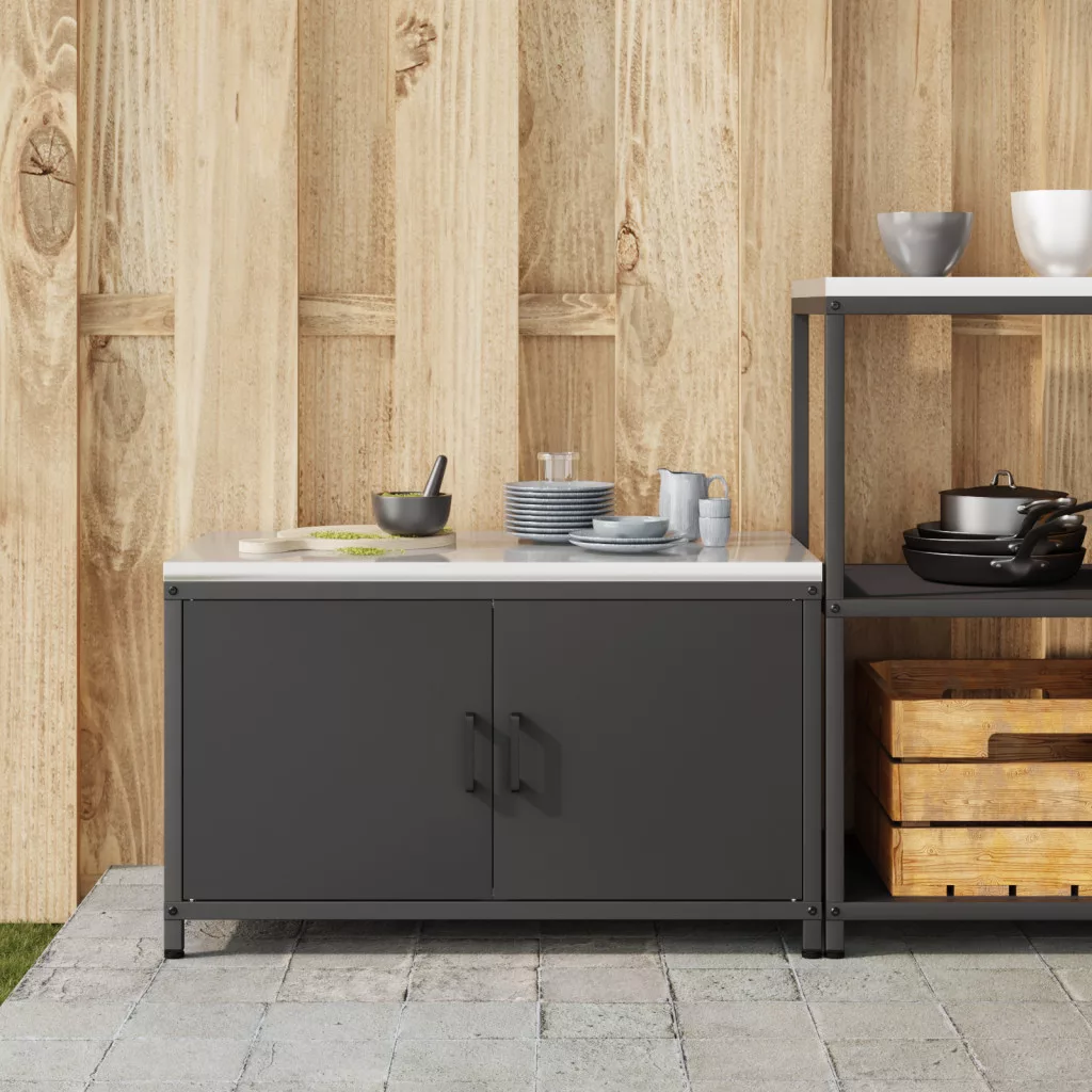 Konyhai tárolószekrény polcokkal tárolóval ajtóval Fekete 60 x 50 x 92 cm Acél