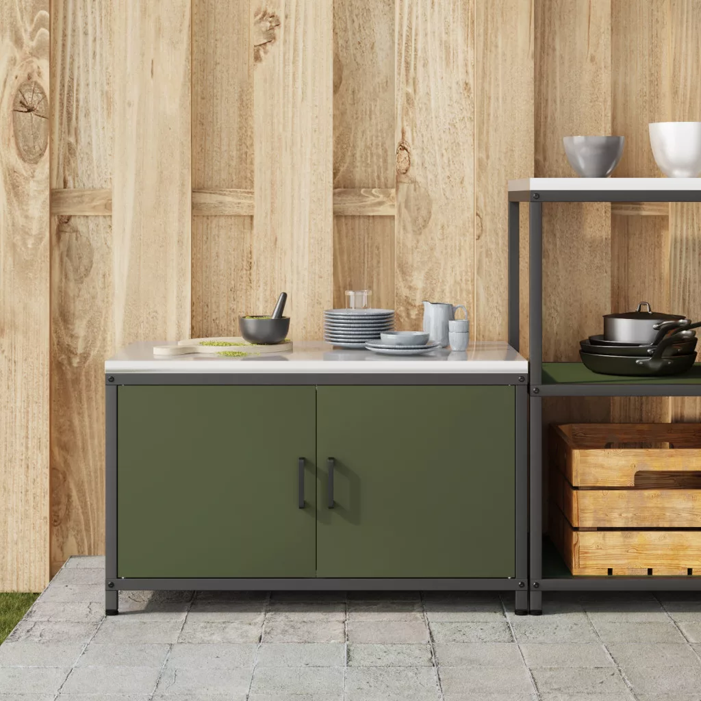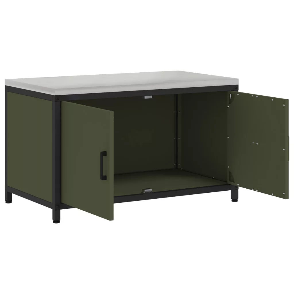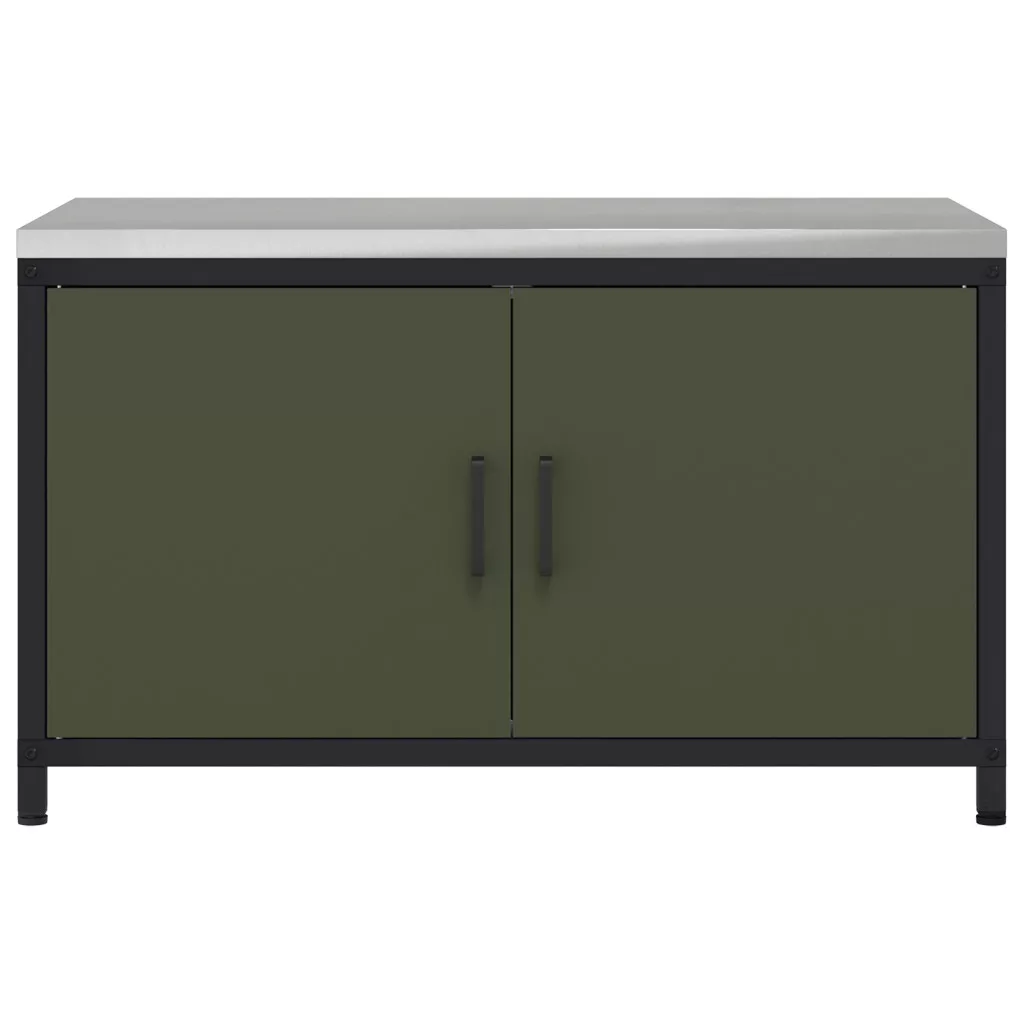 Konyhai tárolószekrény polcokkal tárolóval ajtóval Olívazöld 60 x 50 x 92 cm Acél
