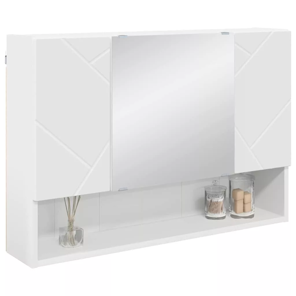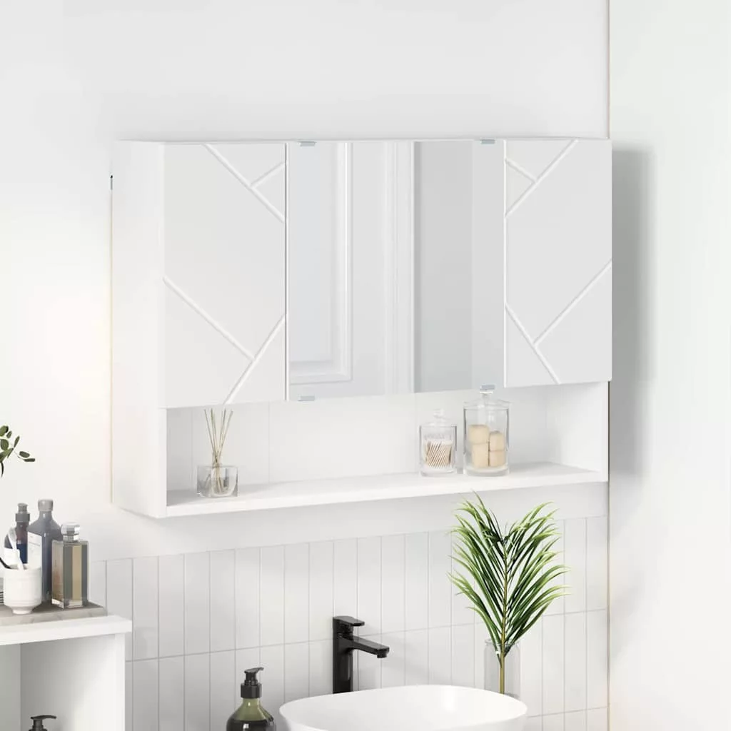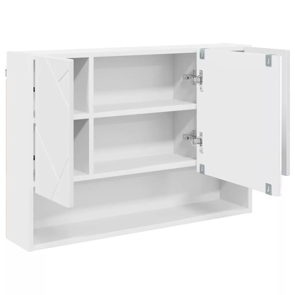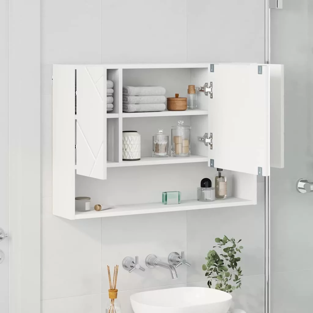 Fürdőszobai tükörszekrény ajtóval Fehér 80 x 17 x 55 cm Faanyag