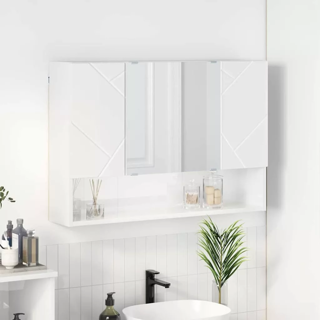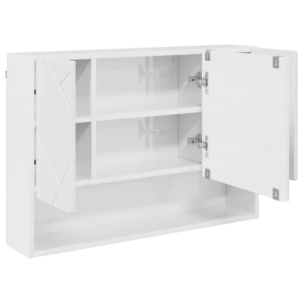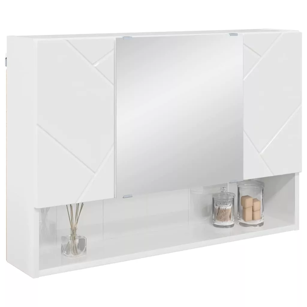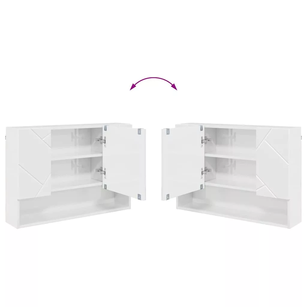 Fürdőszobai tükörszekrény Magasfényű fehér 80 x 17 x 55 cm