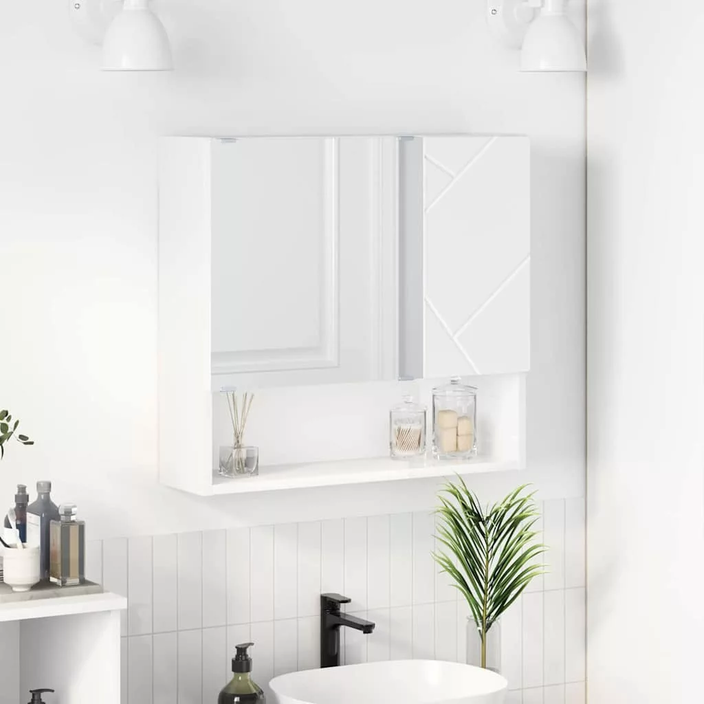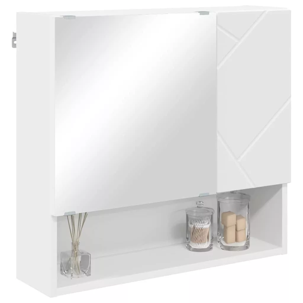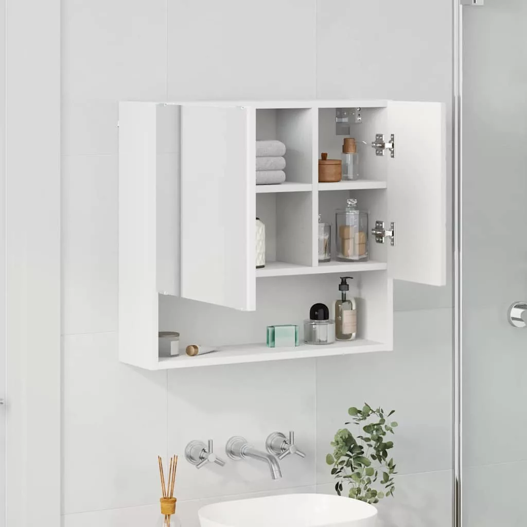 Tükörszekrény polcokkal tárolóval Fehér 59 x 17 x 55 cm Faanyag