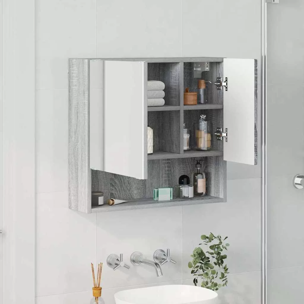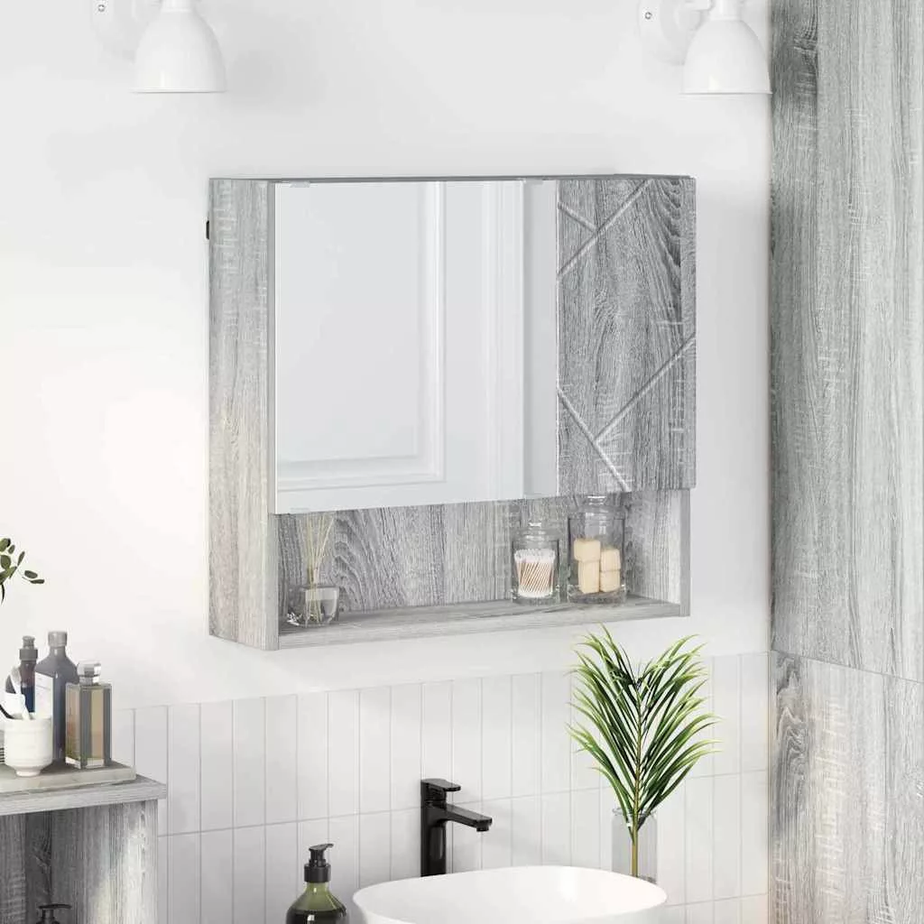 Tükörszekrény polcokkal Szürke sonoma 59 x 17 x 55 cm Faanyag