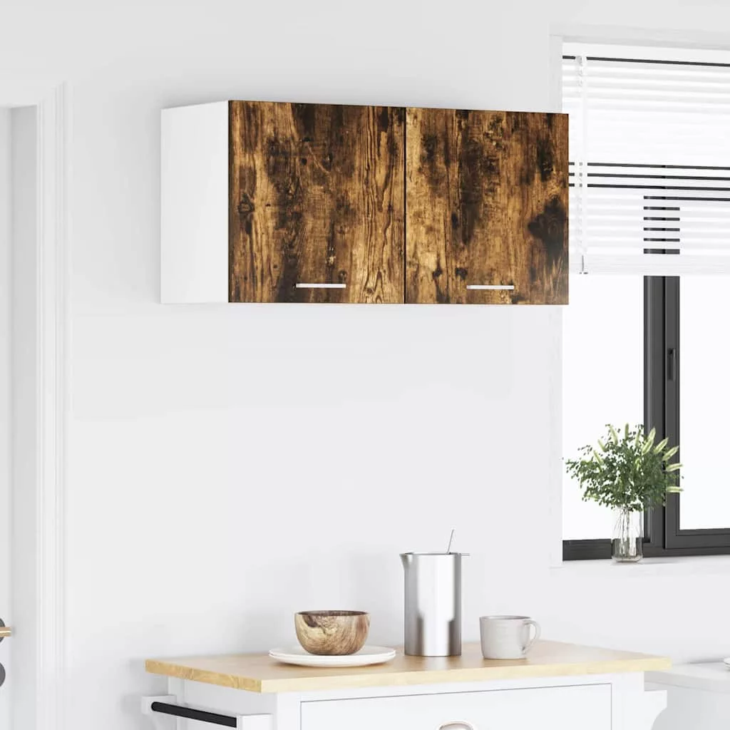 Függő szekrény polcokkal Riga 2 pcs Füstölt tölgy és fehér