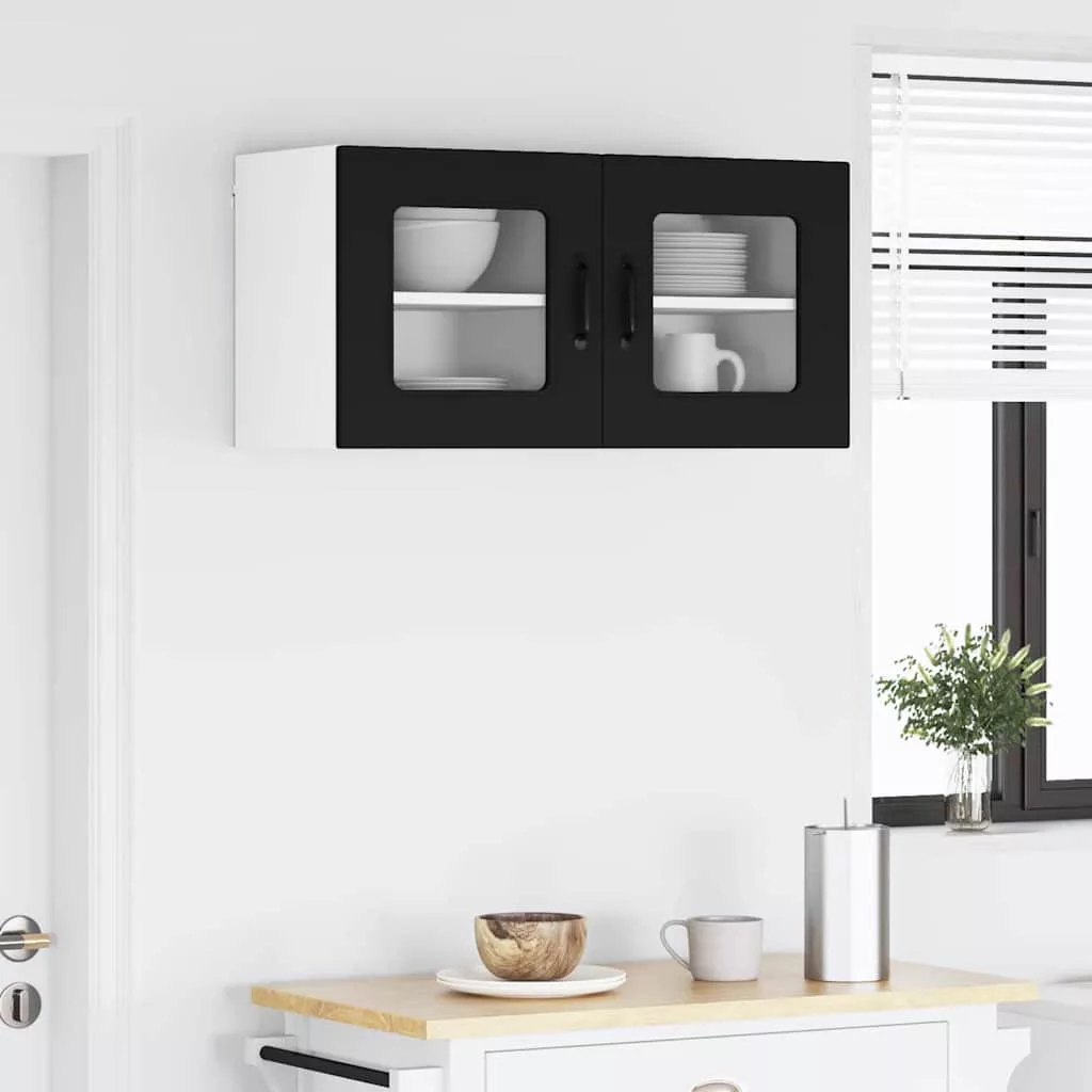 Fali konyhaszekrény polcokkal Fekete 40 x 31 x 40 cm Faanyag