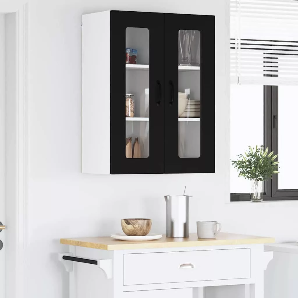 Fali konyhaszekrény polcokkal Fekete 60 x 31 x 80 cm Faanyag