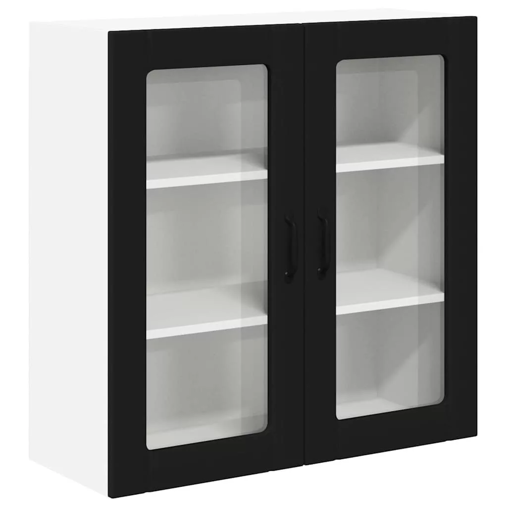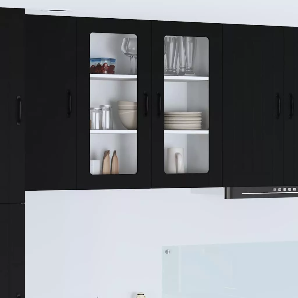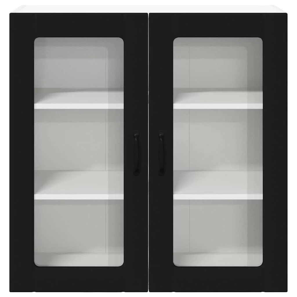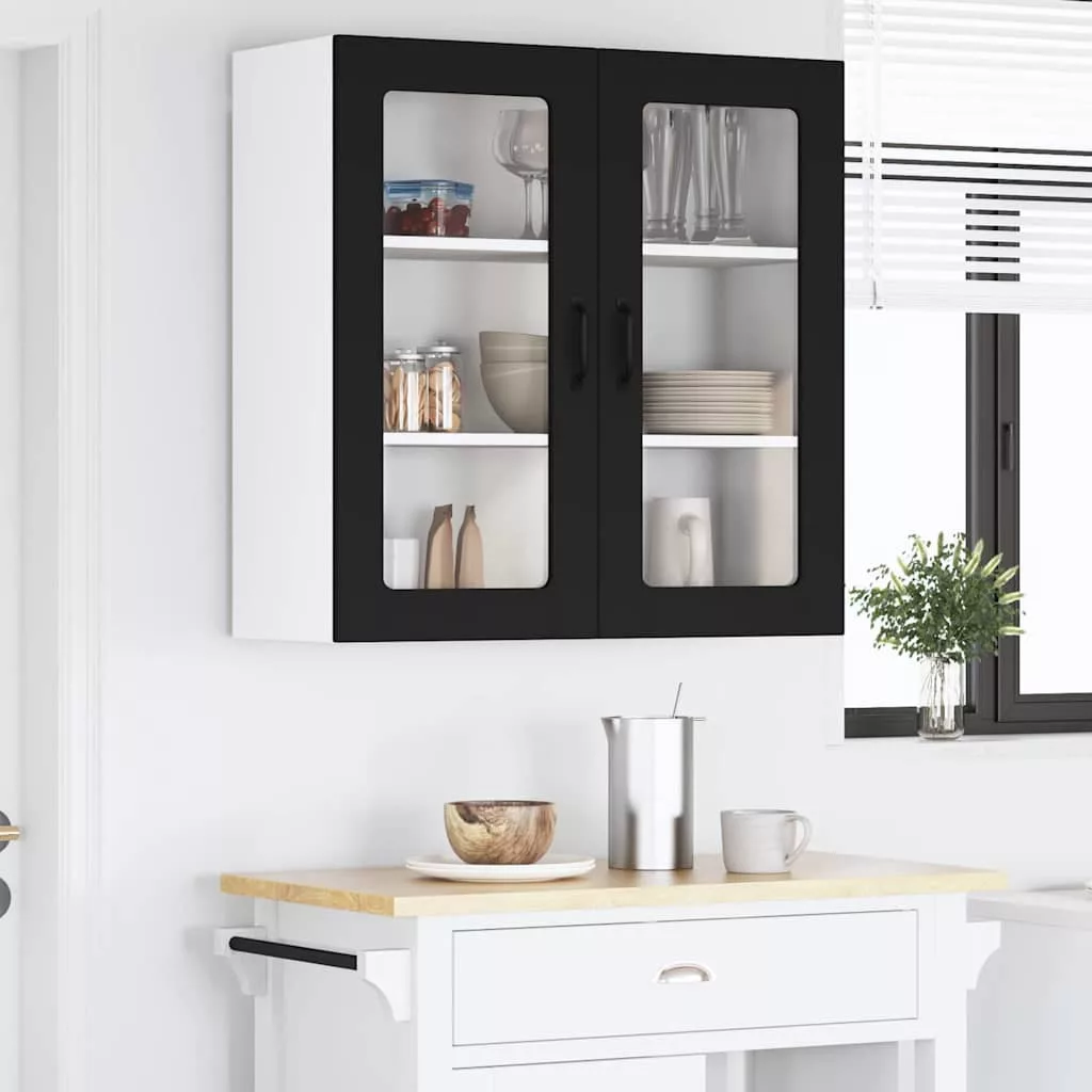 Fali konyhaszekrény polcokkal Fekete 80 x 31 x 80 cm Faanyag