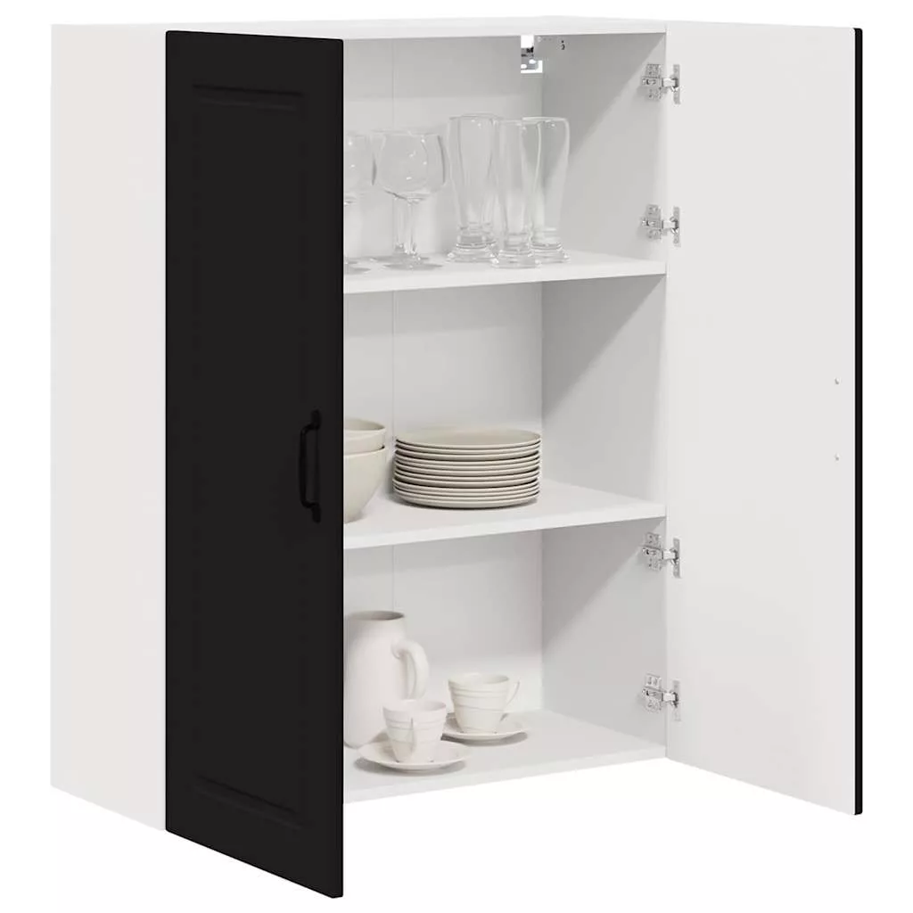 Fali konyhaszekrény polcokkal Fekete 80 x 31 x 100 cm Faanyag