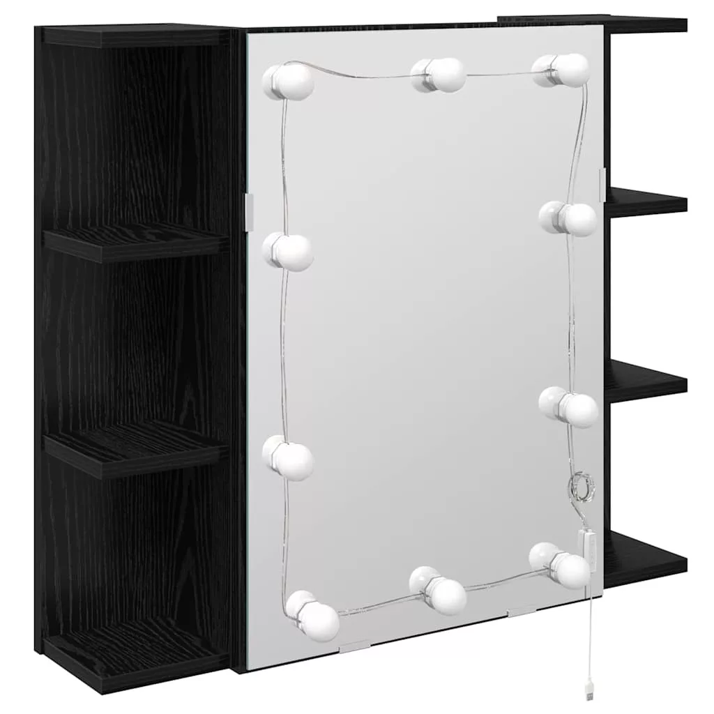 Tükörszekrény polcokkal Fekete tölgy 70 x 16,5 x 60 cm Faanyag