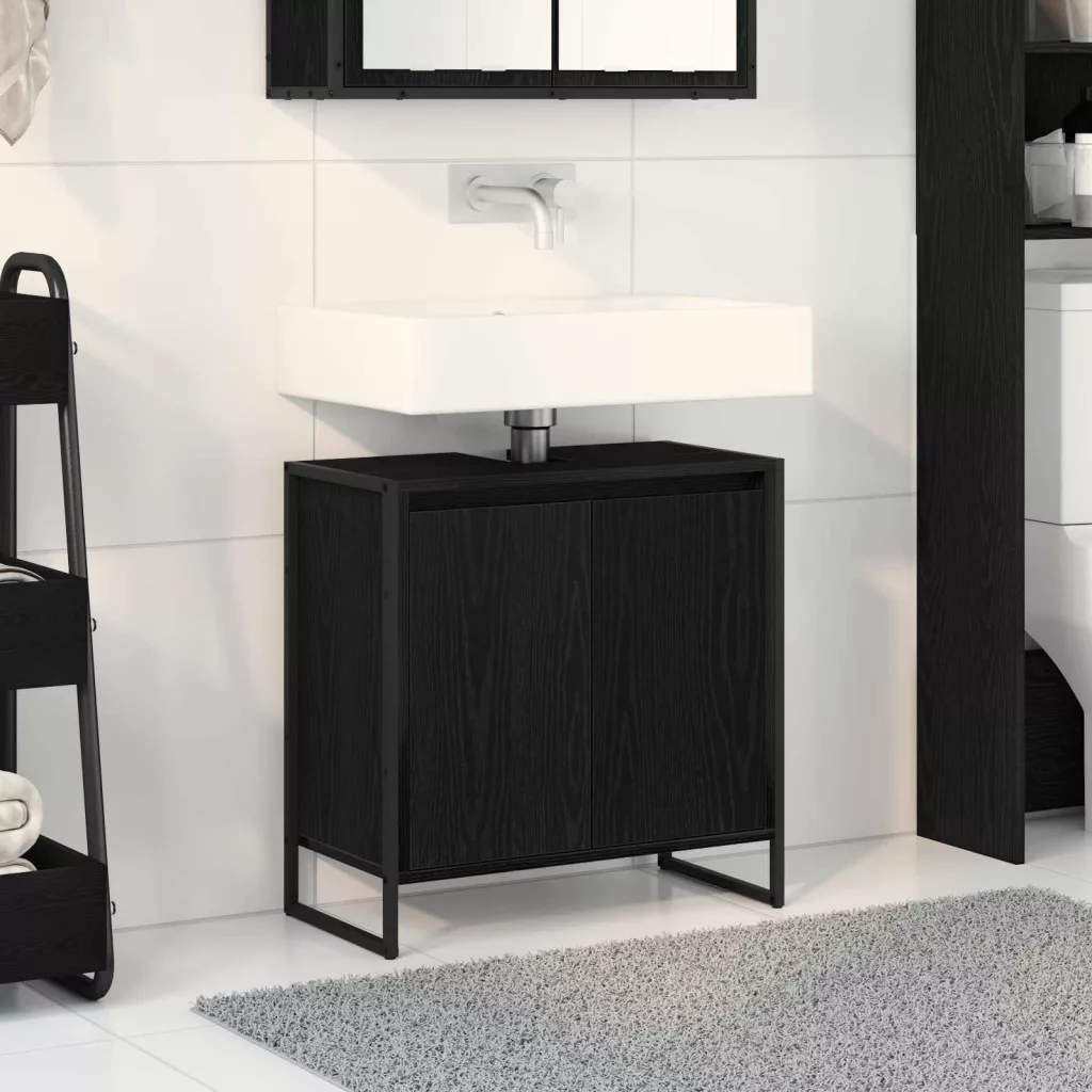 Fürdőszoba Székény ajtóval Fekete tölgy 60 x 30 x 60 cm Faanyag
