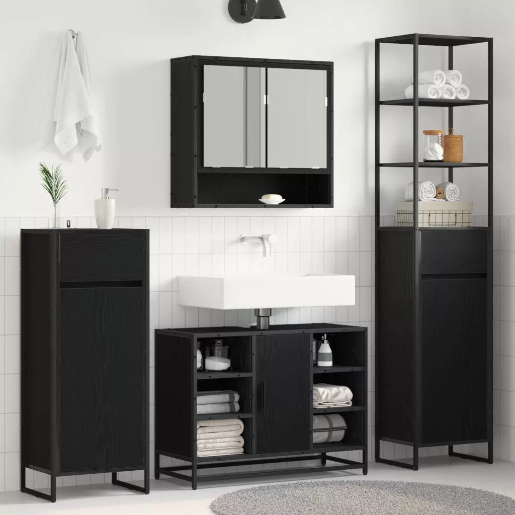 Ez az ipari fürdőszobai szekrény egy letisztult és praktikus tárolási megoldást nyújt bármely fürdőszobában. Modern, téglalap alakú dizájnja a kifinomultságot sugározza. A szerelt fából készült szekrény stílusos és megbízható, ideálisan illik mindenféle fürdőszobai környezethez. Segít rendszerezni a dolgaidat, hogy mindig rend legyen! Prémium szerelt fa: A szekrény minőségi szerelt fából készült, amely tartós és elegáns megjelenést biztosít, így tökéletesen illik a modern fürdőszobába. Tartós felépítés: A szekrény erős szerkezete évekig megbízhatóan szolgál, a fából és acél lábakból készült kombináció pedig biztosítja a stabilitását. Hatékony tárolási lehetőségek: A belső tér bőséges helyet ad a fürdőszobai okos elrendezéséhez, így gyorsan elérheted a szükséges dolgokat. Egyszerű összeszerelési előírások: A szekrényt két ember egyszerűen összeszerelheti csavarhúzóval. A pontos útmutatás gyorsan kész terméket garantál. Ápolási utasítások: Tartsd a szekrényt a legjobb állapotban nedves ruhával való áttörléssel. A rendszeres karbantartás megőrzi a szekrény modern megjelenését.