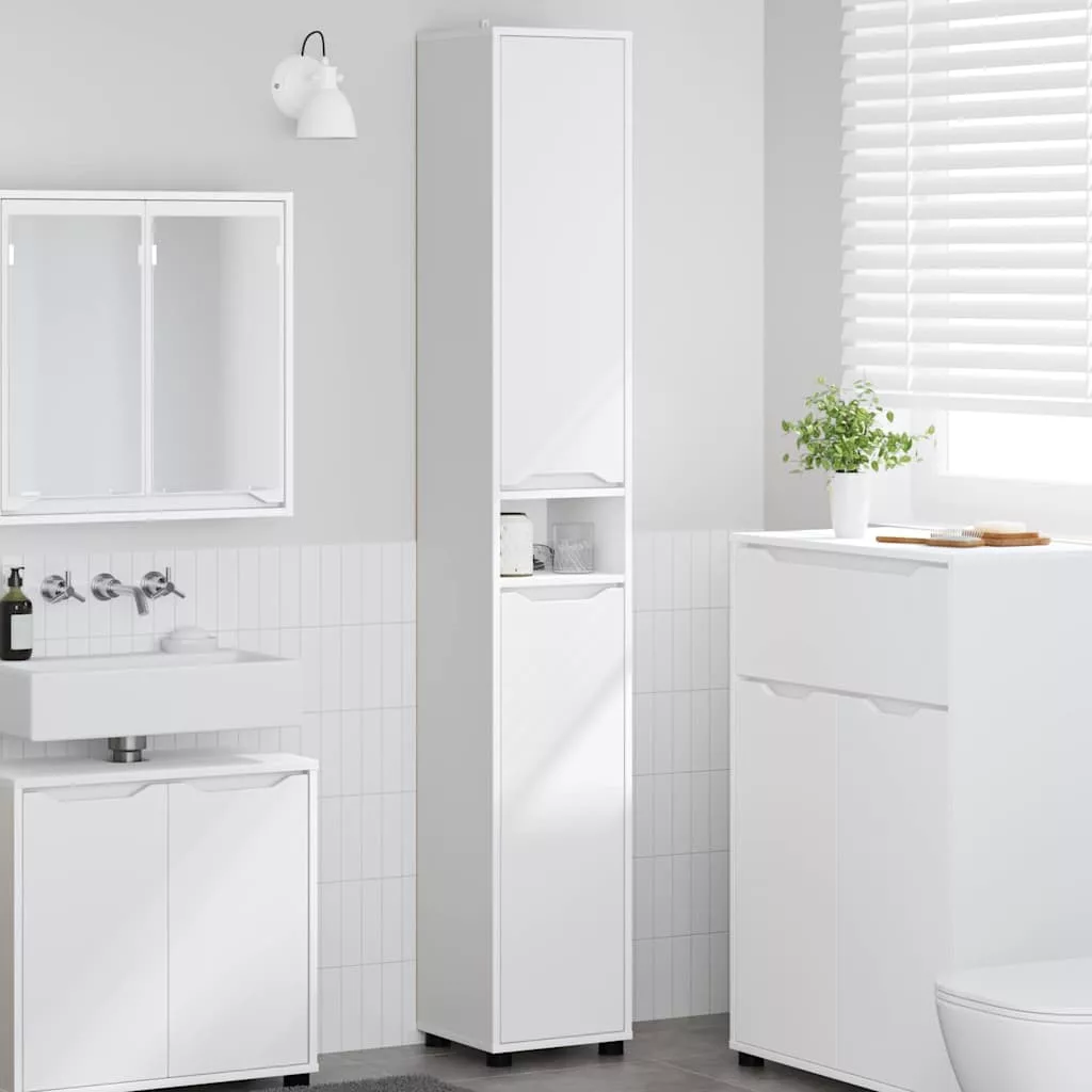 Fürdőszoba Székény polcokkal Fehér 30,5 x 30 x 195 cm Faanyag