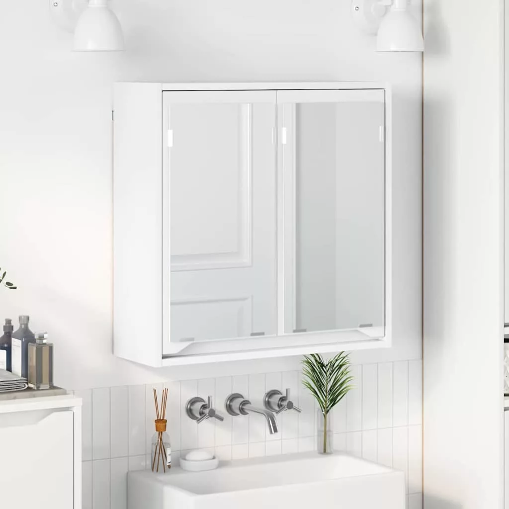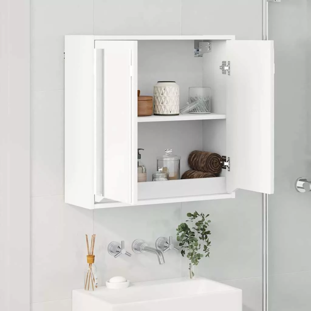 Fürdőszobai tükörszekrény ajtóval Fehér 60 x 20 x 60 cm Faanyag